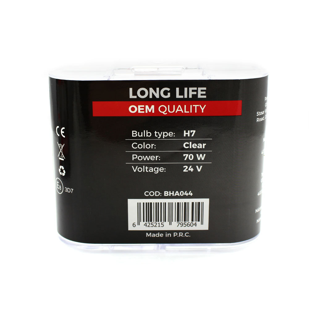 Utilizare: Verifică tipul de soclu al farului (H7) și tensiunea instalației (24V). Montează becul pe far conform manualului vehiculului, evitând atingerea sticlei cu mâna (pentru a preveni scurtarea duratei de viață). Recomandat să schimbi becurile în pereche pentru o lumină uniformă.
