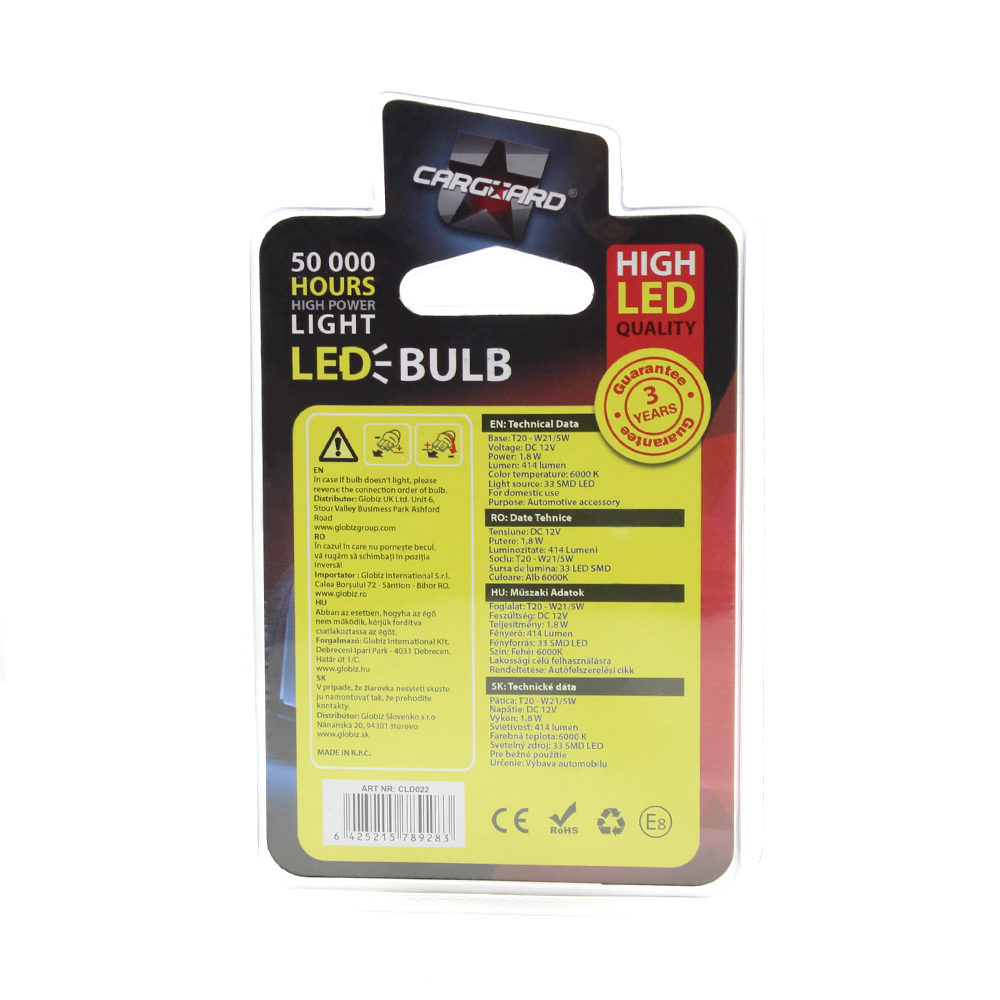 Set 2 becuri LED T20 W21/5W CLD022 33SMD 12V pentru interior si portbagaj