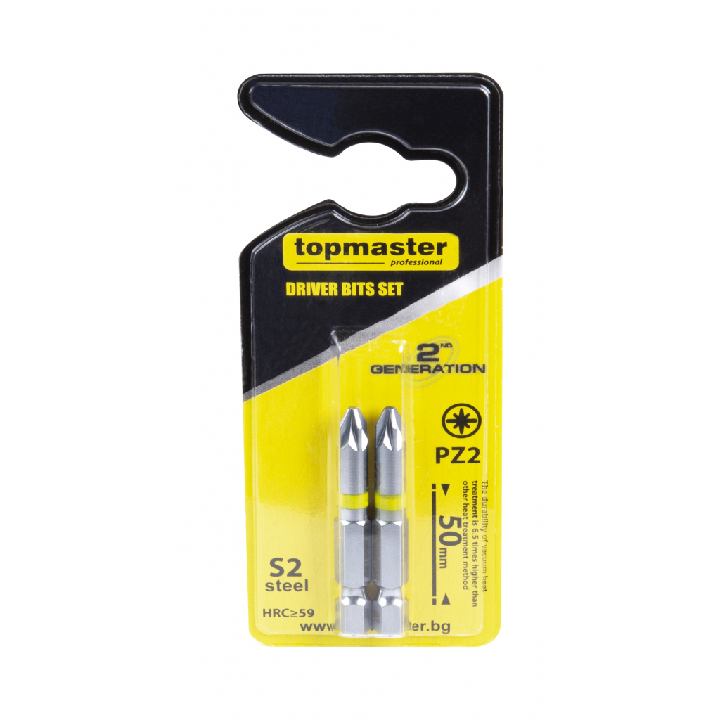 Alege acest set 2 biti PZ2 50 mm de la Top Master Pro pentru lucrari de insurubare precise si eficiente. Forma Pozidriv PZ2 ofera o prindere buna in capul surubului, iar lungimea de 50 mm ajuta la acces mai facil in zone inguste sau greu accesibile.