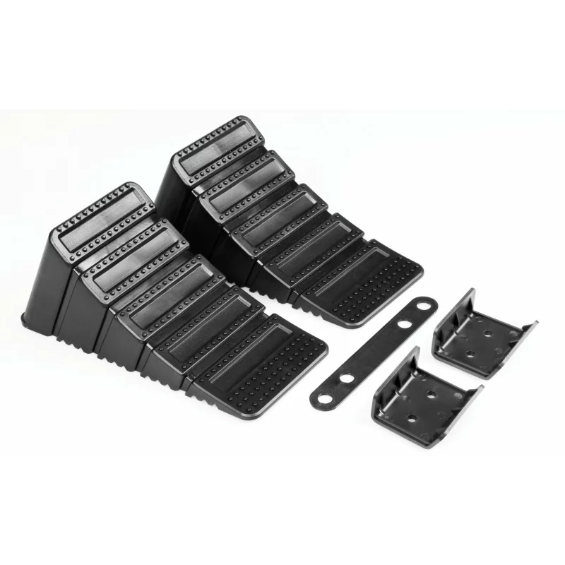 Utilizare: pozitionati calele in dreptul rotilor pentru a limita deplasarea vehiculului. Se pot folosi la stationare, reparatii, ridicare sau pentru ghidarea rotii la urcarea peste mici diferente de nivel. Pentru o fixare suplimentara, utilizati placutele de ancorare incluse.