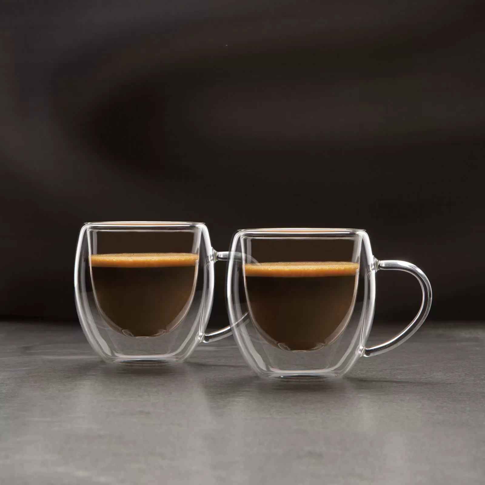 Set 2 Cani Cesti din Sticla cu Perete Dublu Thermo Transparent cu Capacitate 80 ml pentru Cafea