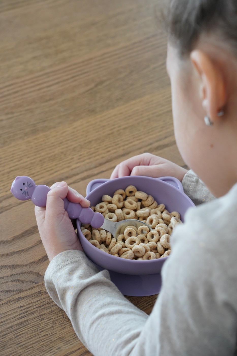 Transforma fiecare masa intr-un moment mai placut cu acest set 2 castroane din silicon cu ventuza Melii, in adorabilul model Pisica. Concepute pentru bebelusi si copii mici, castroanele ajuta la o hranire mai curata si mai relaxata, datorita ventuzei puternice care le mentine fixate pe suprafete plane. Designul simpatic si culoarea mov incurajeaza alimentatia independenta si fac ora mesei mai distractiva.