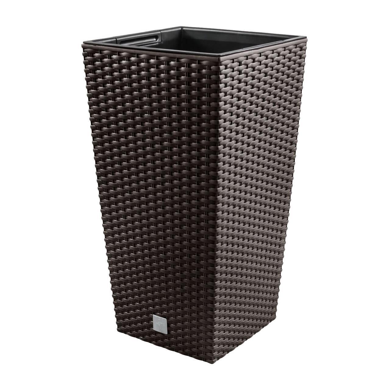 Set 2 ghivece de flori, Rato, imitatie ratan, inalte, 22.5x22.5x42 cm, maro, Prosperplast GartenVIP DiyLine