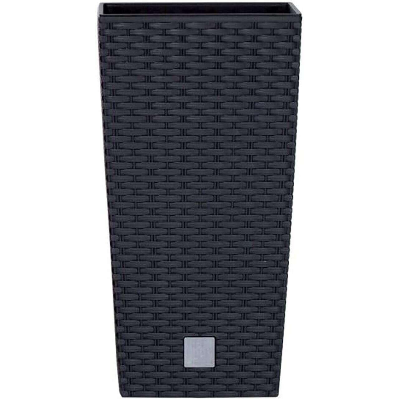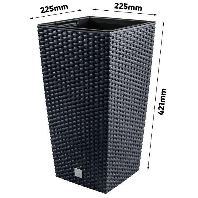 Set 2 ghivece de flori, Rato, imitatie ratan, inalte, 22.5x22.5x42 cm, negru, Prosperplast GartenVIP DiyLine