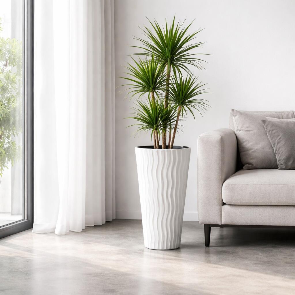 - Designul cu textura inspirata de dunele de nisip adauga un element decorativ deosebit, transformand ghivecele in accesorii estetice moderne. Suprafetele usor reliefate reflecta discret lumina, oferind un efect vizual placut si natural, care completeaza frumusetea plantelor.
