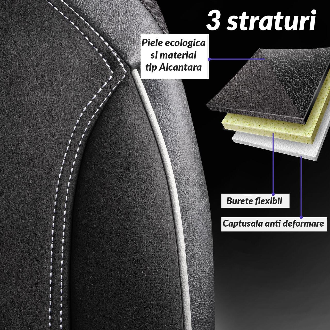 - Material: tip alcantara și piele ecologică cu inserții textile rezistente