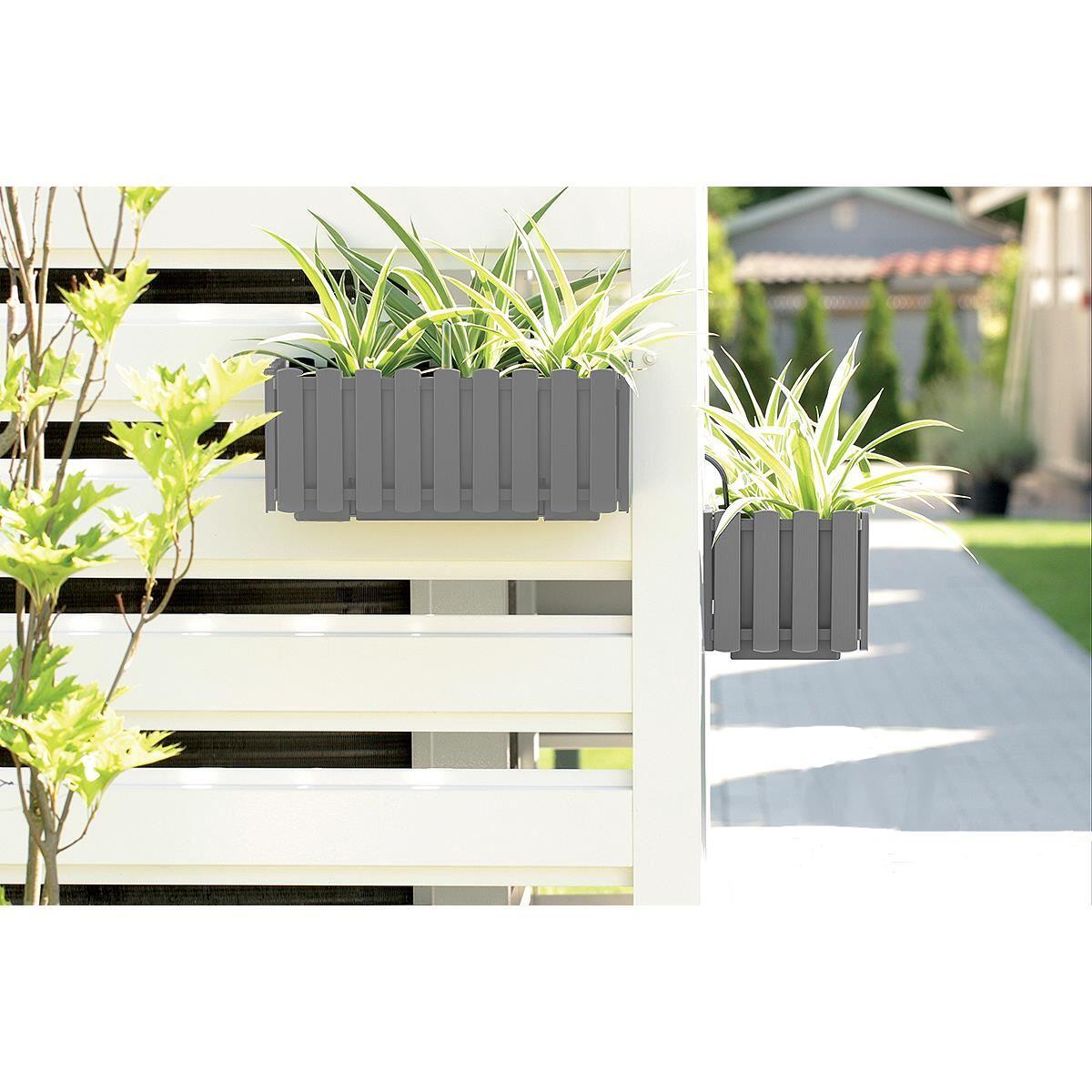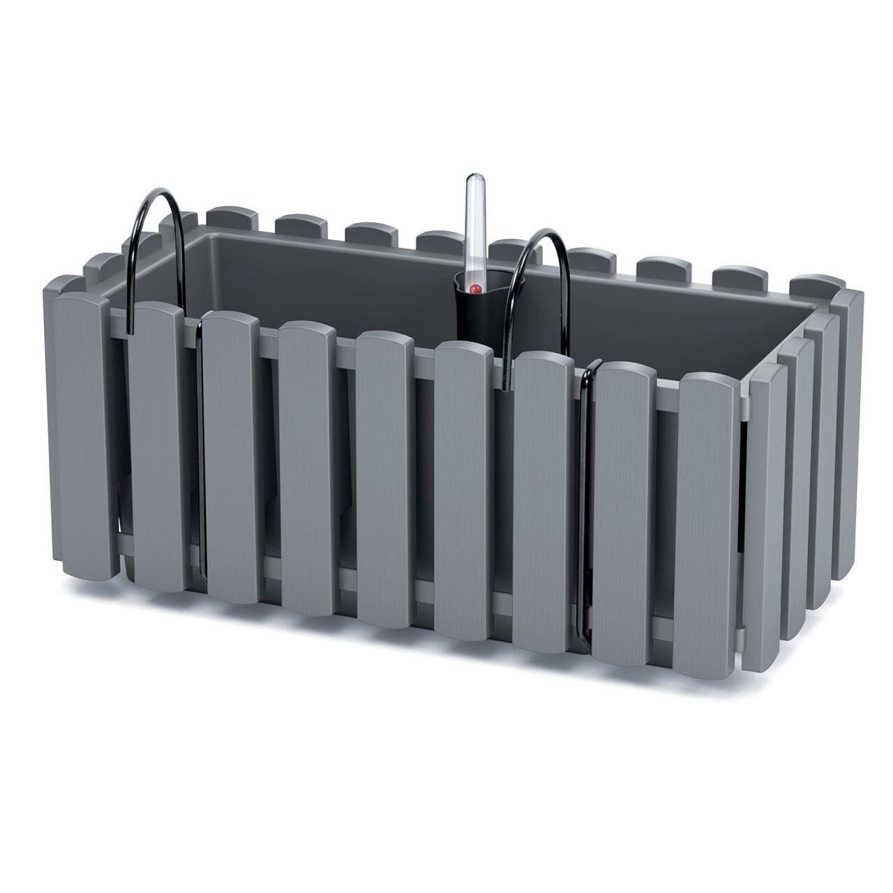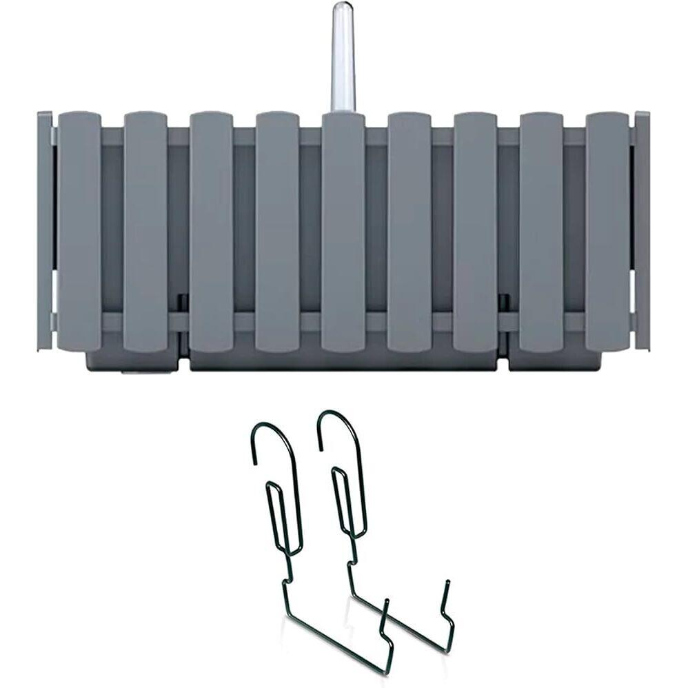Set 2 jardiniere decorative cu suport metalic, sistem irigare, gri, 38x18x16.2 cm, Boardee Fencycase W GartenVIP DiyLine