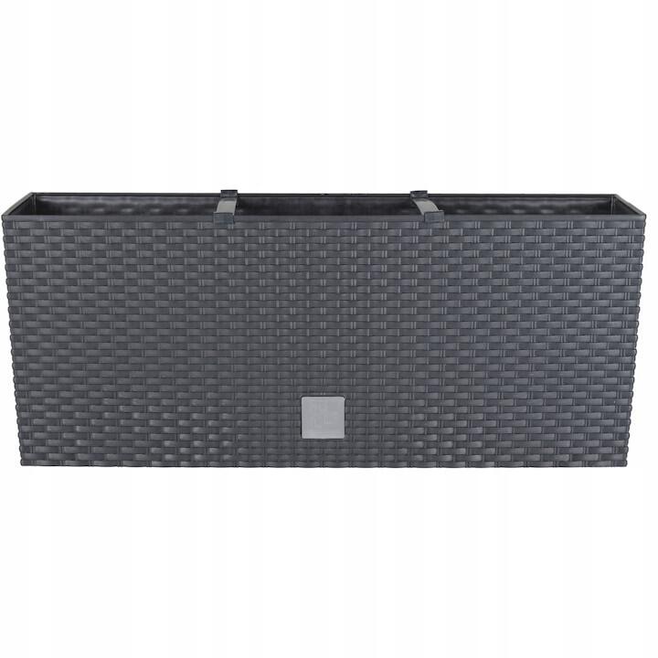 Set 2 jardiniere decorative, sistem irigare, imitatie ratan, antracit, 30 L, 60x25x24 cm, Rato Case GartenVIP DiyLine