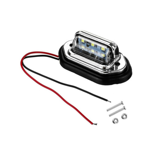 Ofera placutei de inmatriculare o iluminare clara si moderna cu acest set de 2 lampi LED pentru numar, cu carcasa cromata si lumina alba rece. Sunt potrivite pentru instalatii de 12V-24V, ideale pentru autoturisme, utilitare, remorci sau semiremorci.