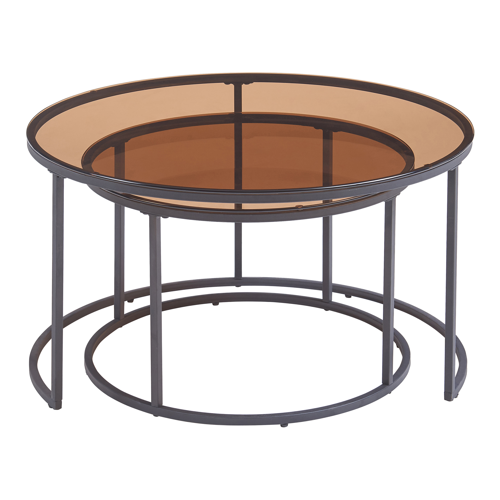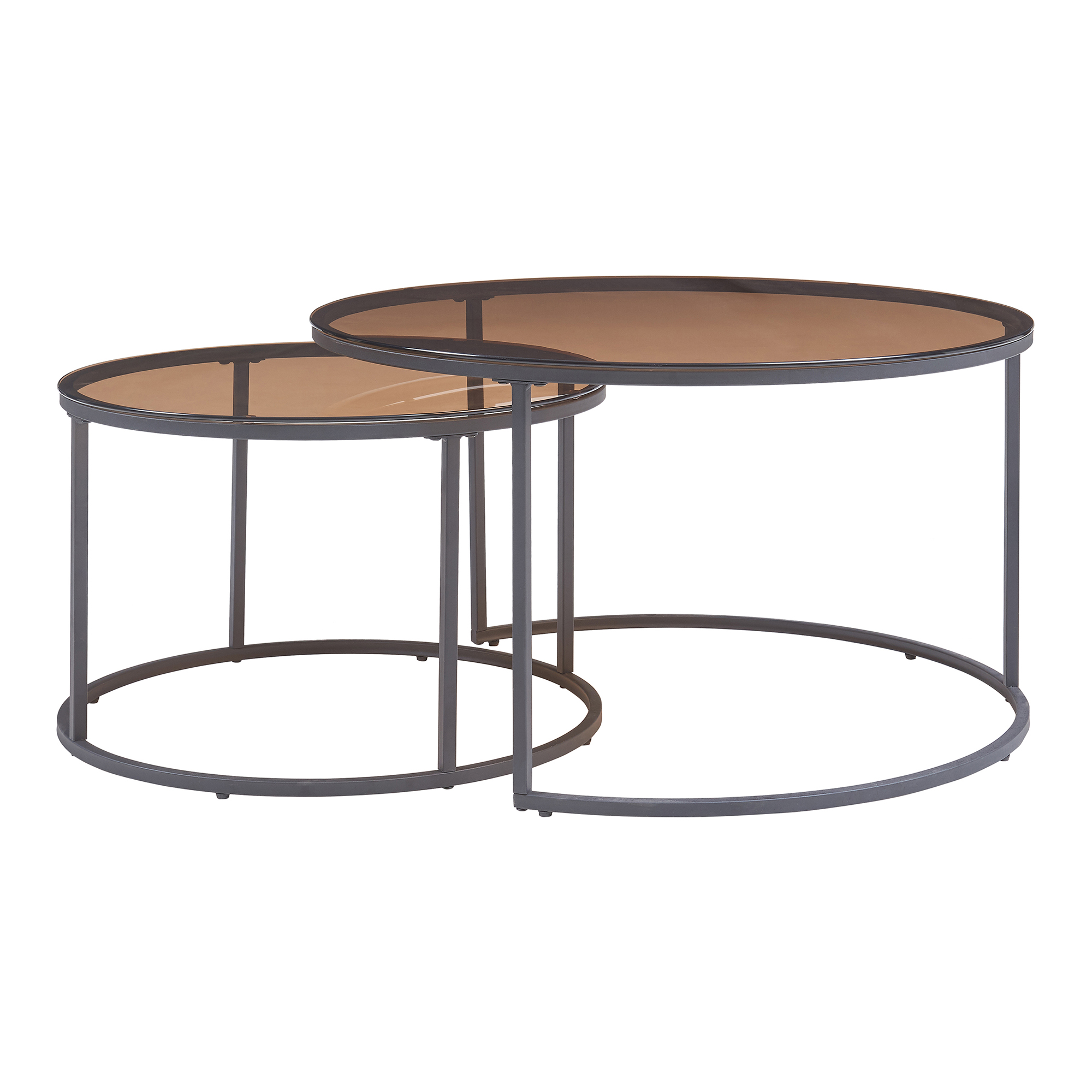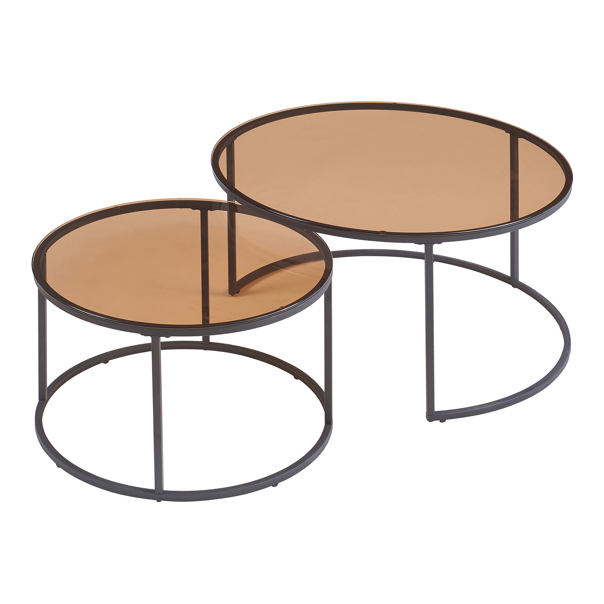 Set 2 măsuțe de cafea Kokkola cu sticlă fumurie maro și cadru metalic