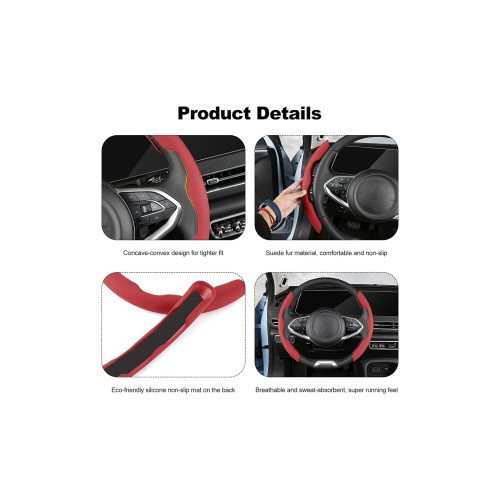 Ofera volanului un look mai sport si o priza mai buna cu acest set de ornamente pentru volan din alcantara premium. Materialul moale, tip catifea, este respirabil si placut la atingere: cald iarna si racoros vara, pentru confort si control mai bun la condus.