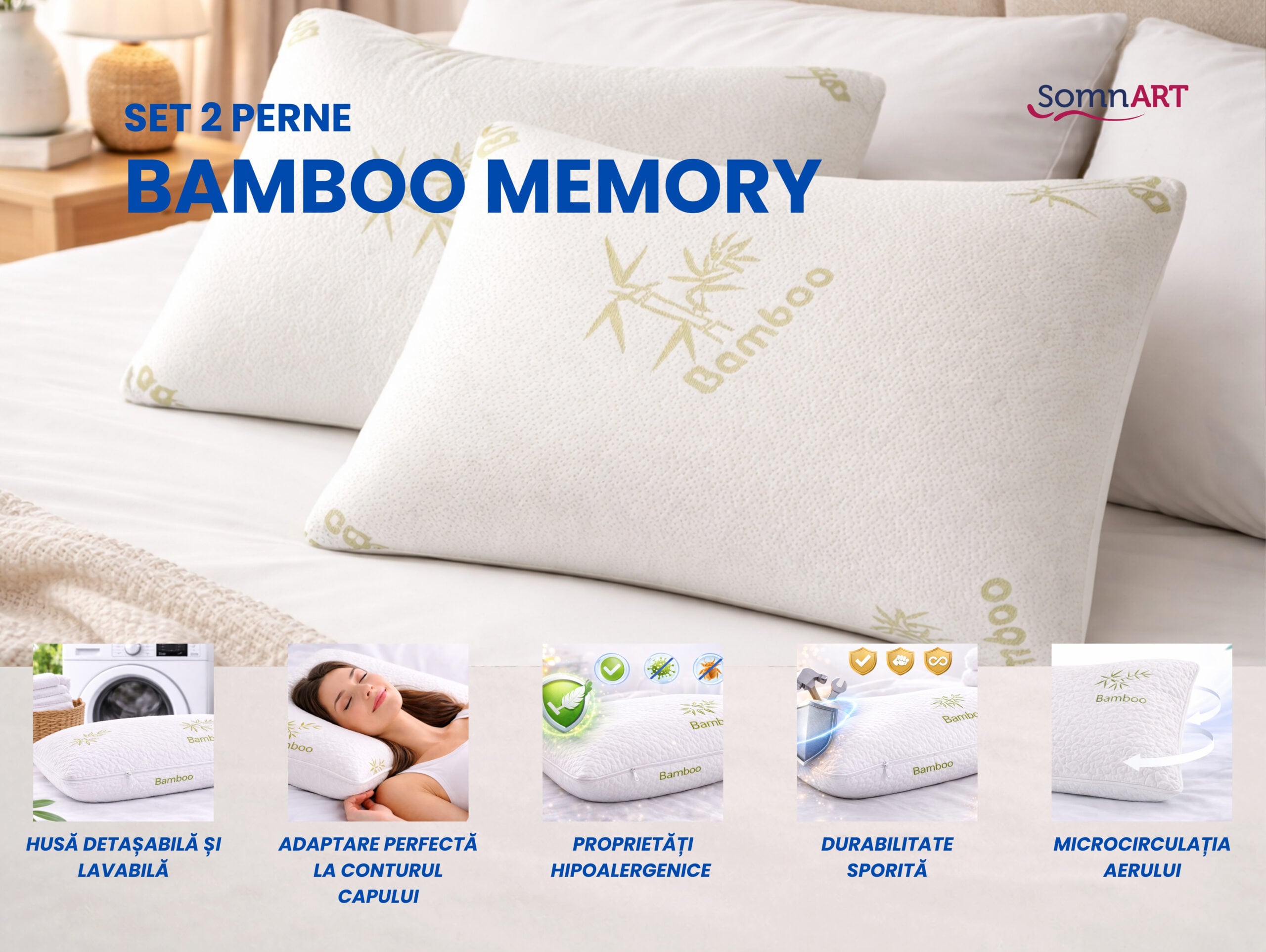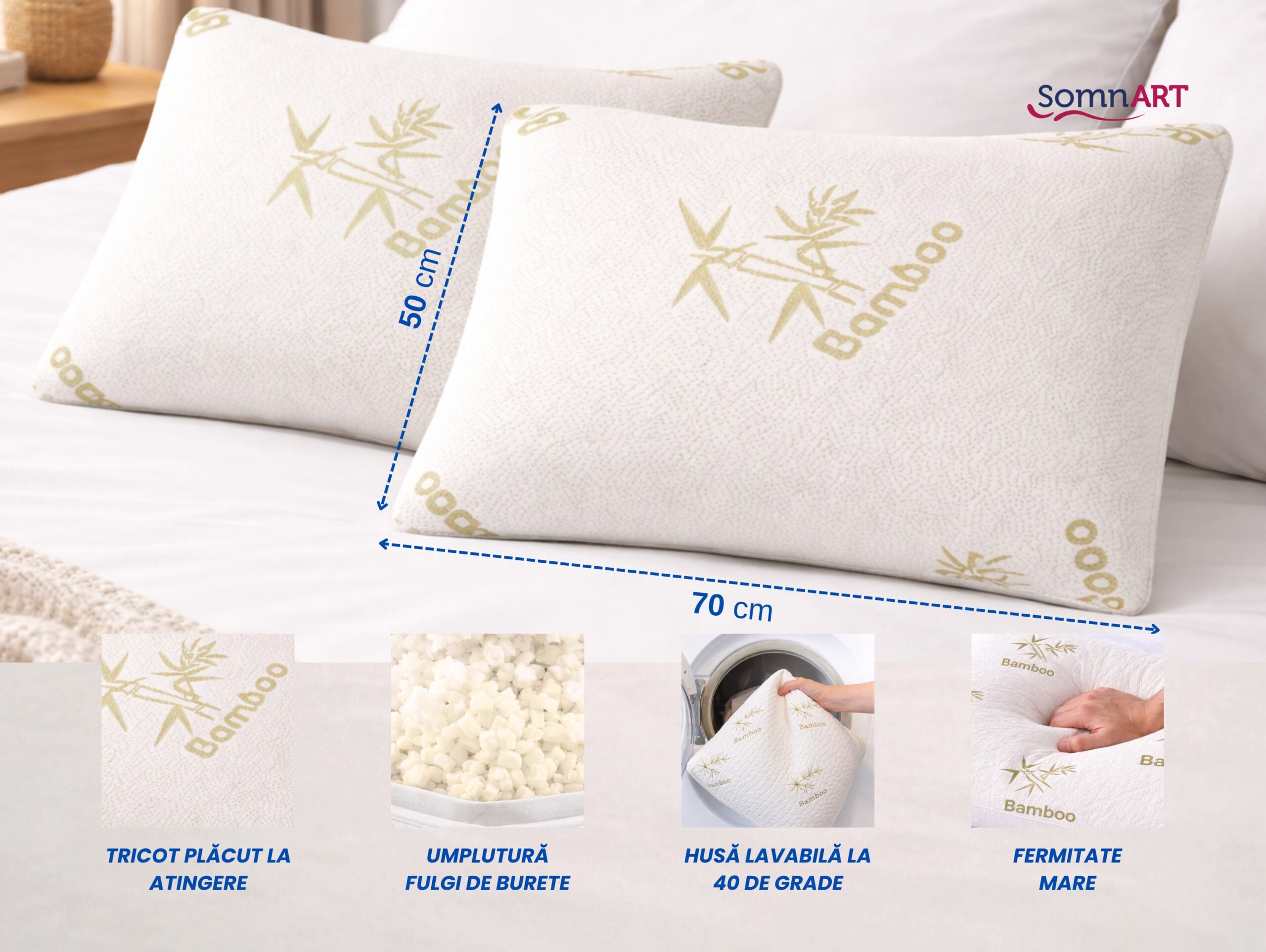 Dacă îți dorești perne bambus confortabile, practice și ușor de întreținut, acest set Somnart este o alegere excelentă pentru un plus de relaxare în fiecare noapte.