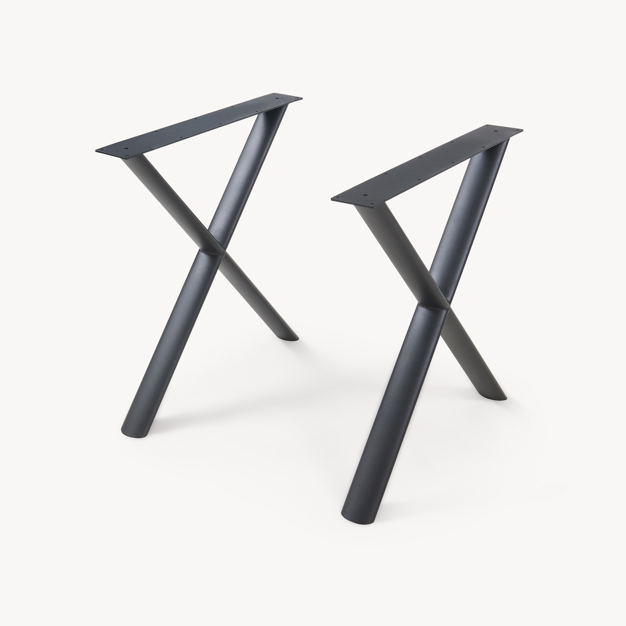 Set de 2 picioare de masă tip X din oțel negru, ideale pentru proiecte DIY precum mese de dining, birouri sau mobilier personalizat. Construcția robustă, finisajul rezistent și șuruburile reglabile oferă stabilitate, montaj ușor și adaptare pe podele denivelate.