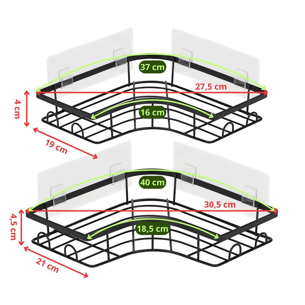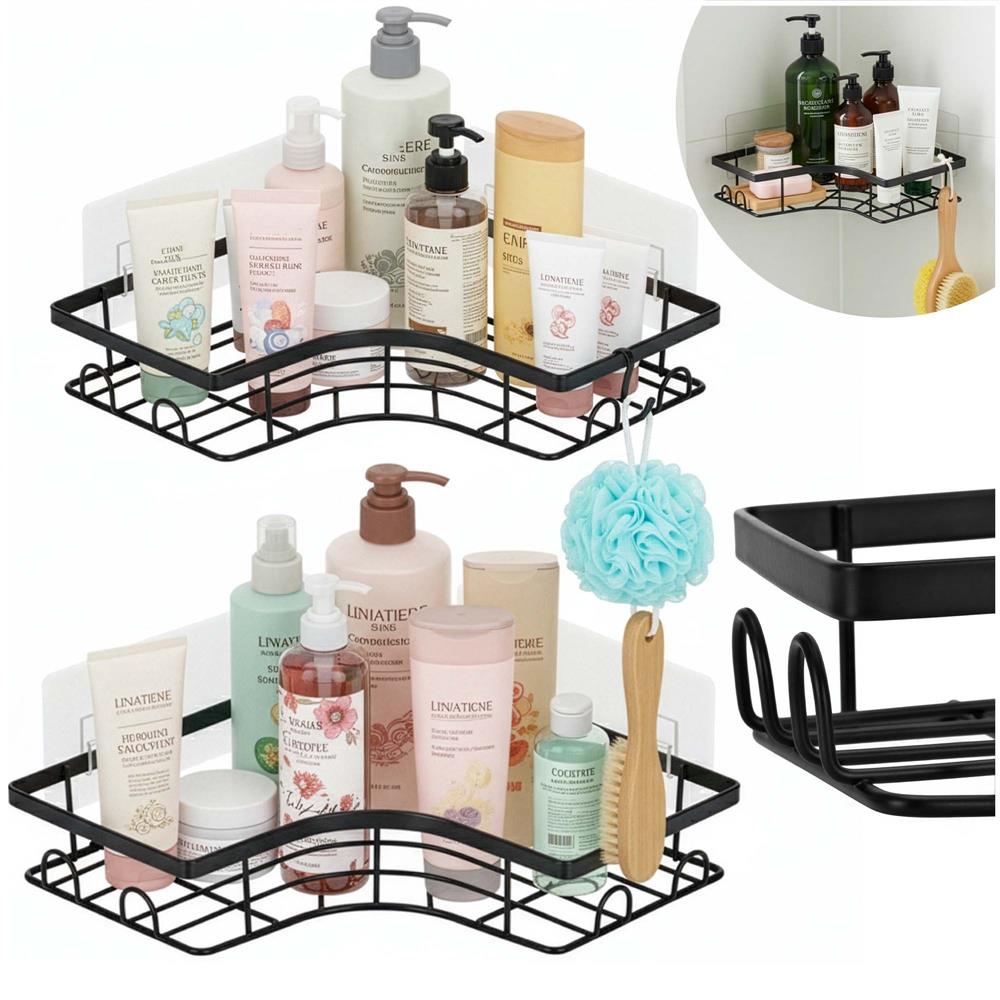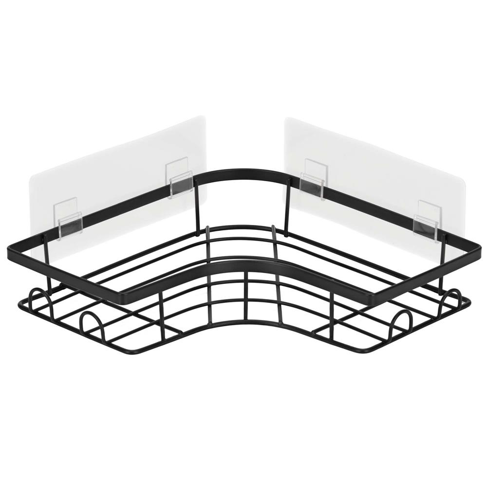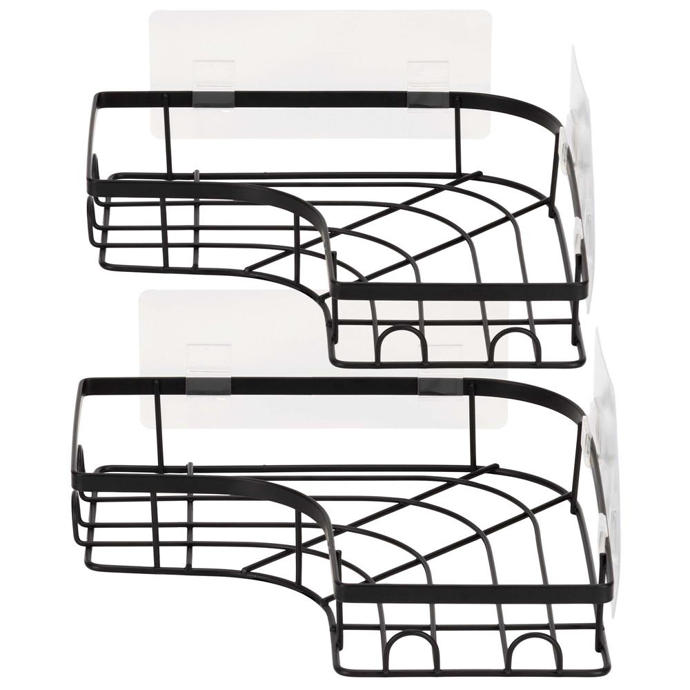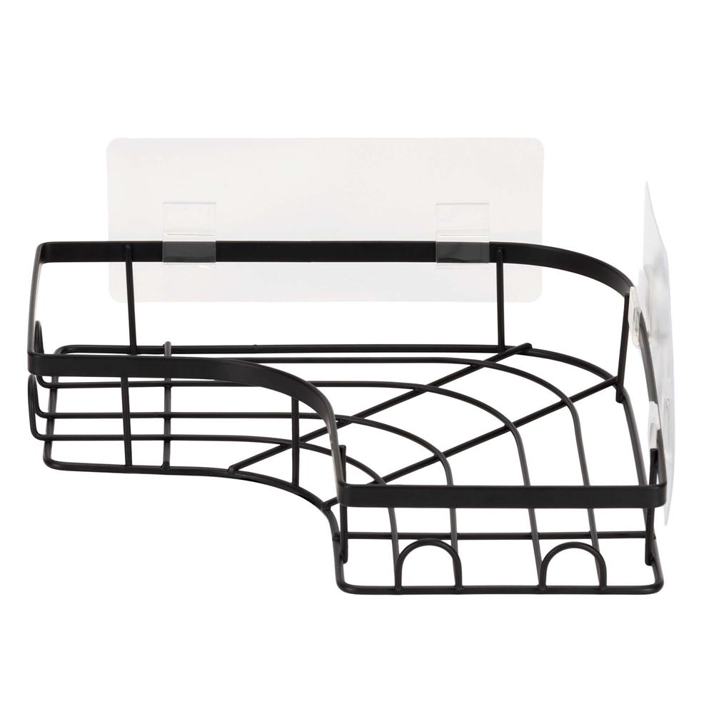 Set 2 polite de colt pentru dus, metalice cu montaj autoadeziv, inox, negru Household NewTrend
