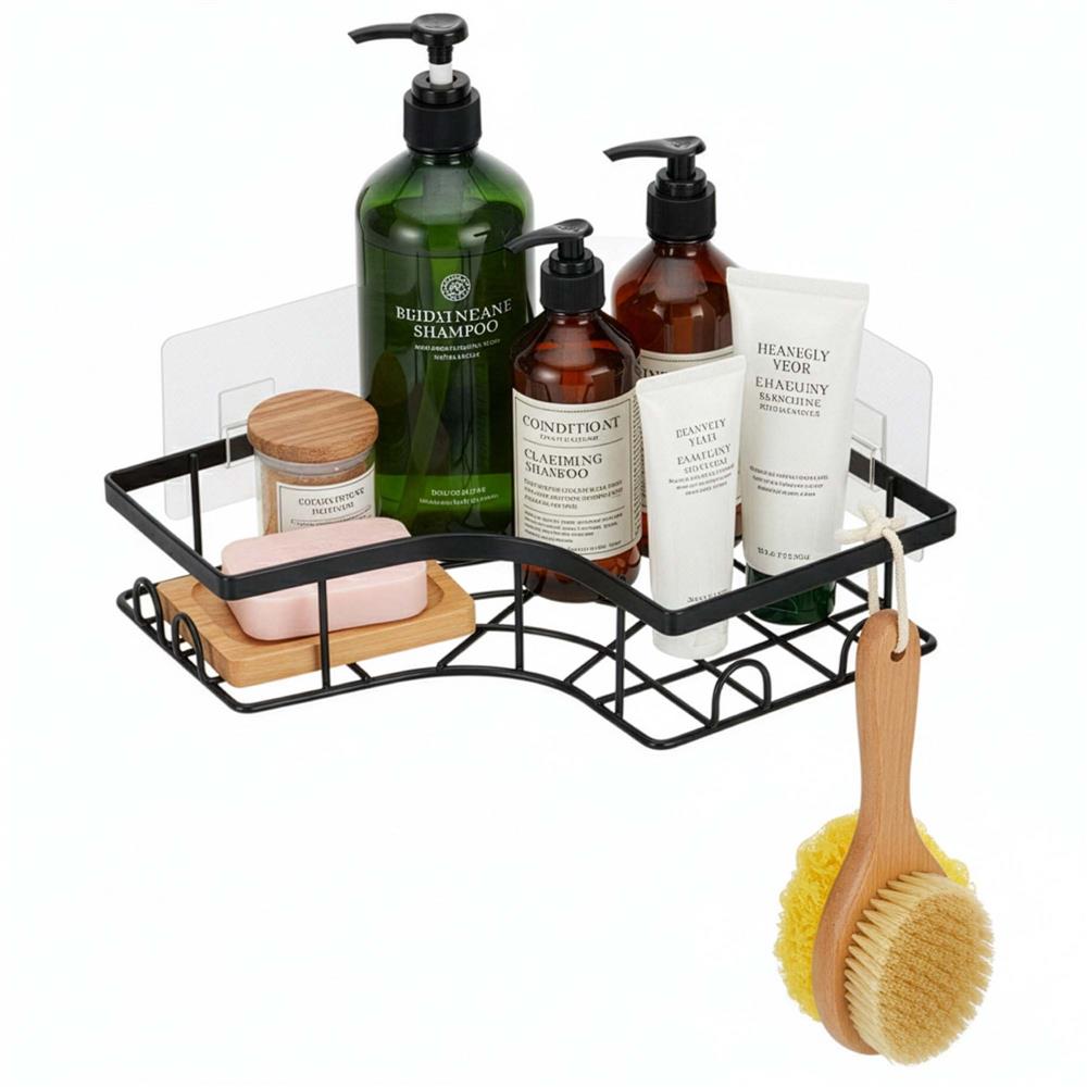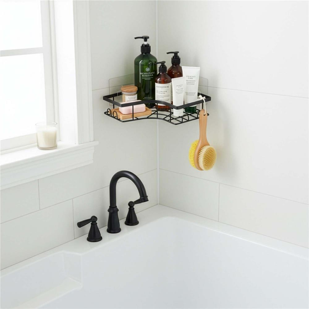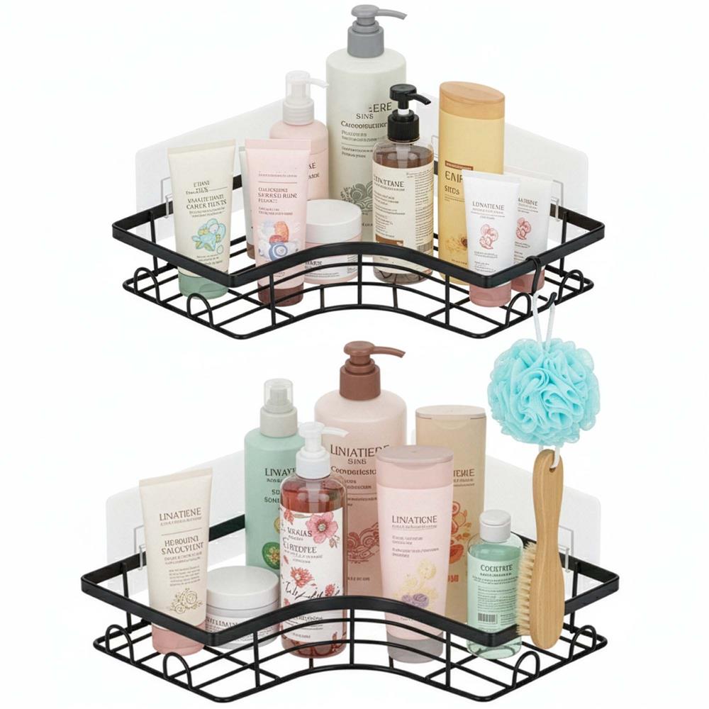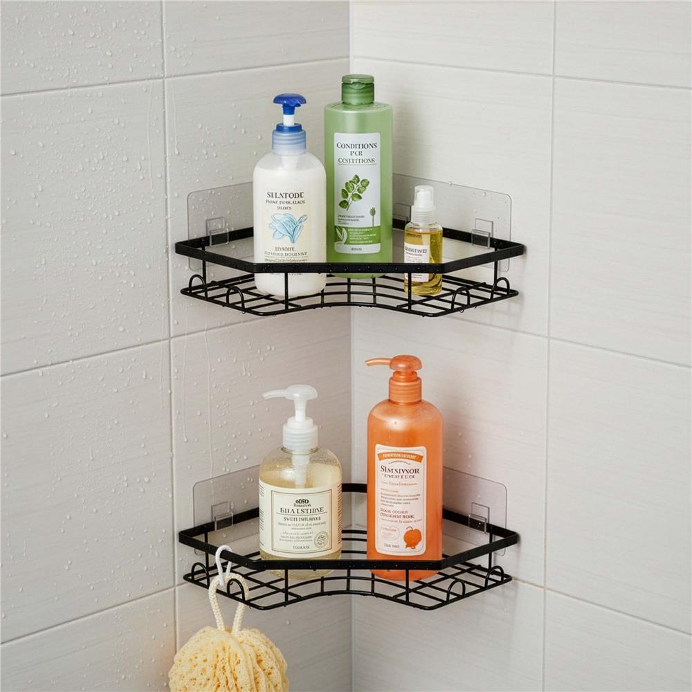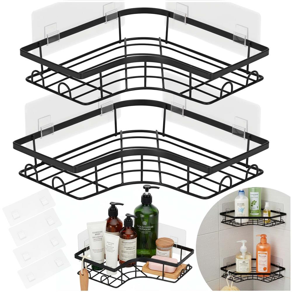 Set 2 polite de colt pentru dus, metalice cu montaj autoadeziv, inox, negru Household NewTrend