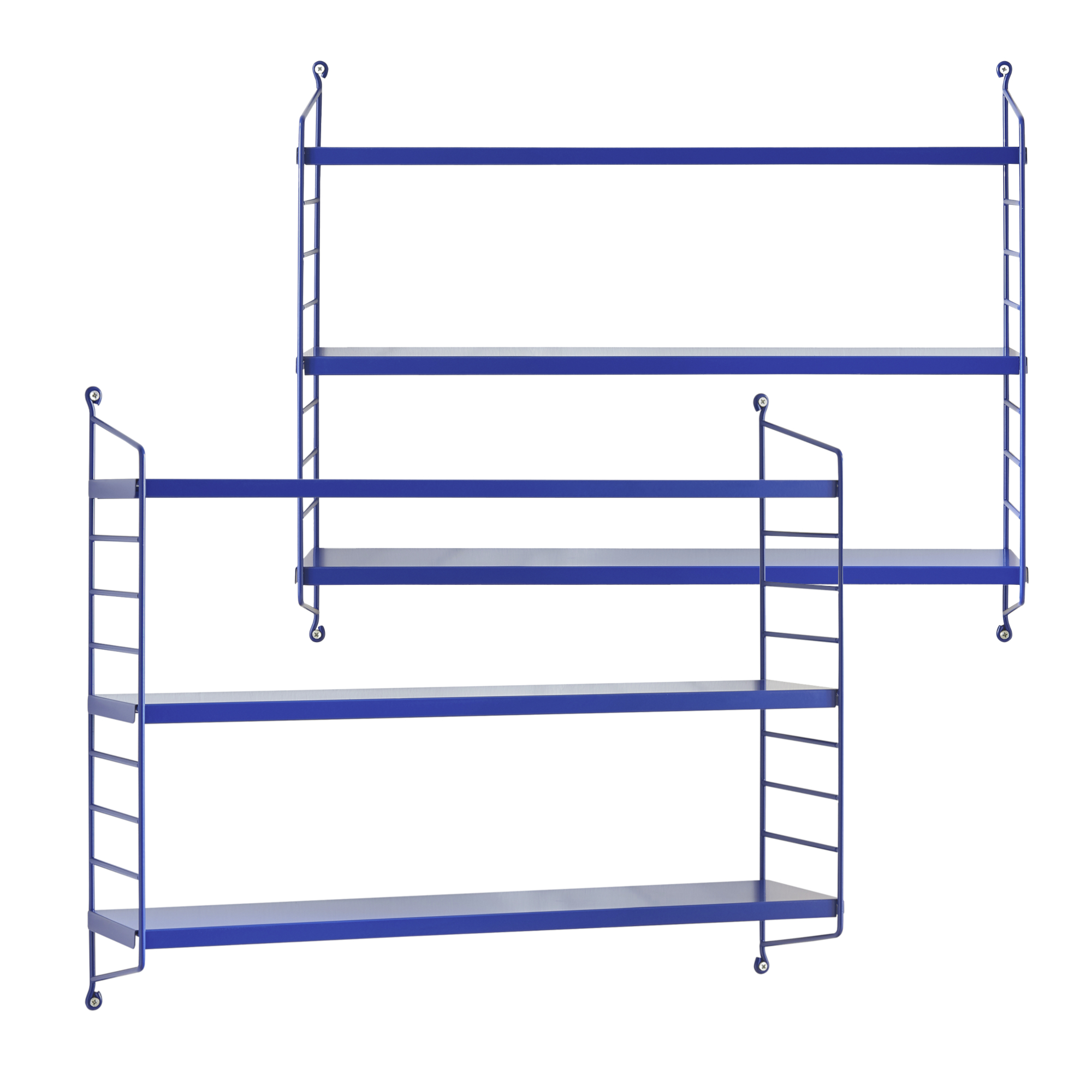 Set 2 rafturi de perete modulare albastre din oțel, 3 polițe