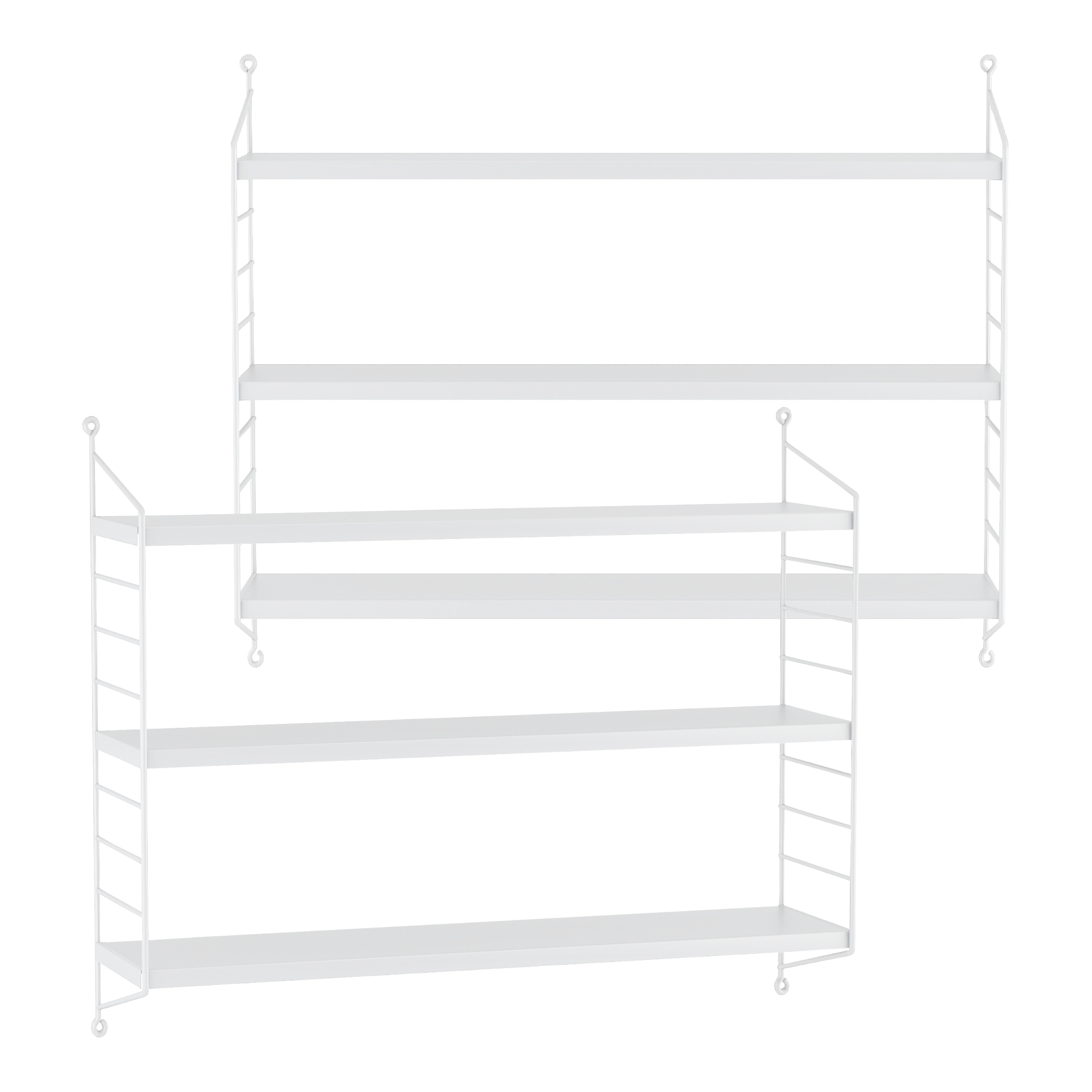 Set 2 rafturi de perete modulare albe cu 3 polițe, metal, [en.casa]