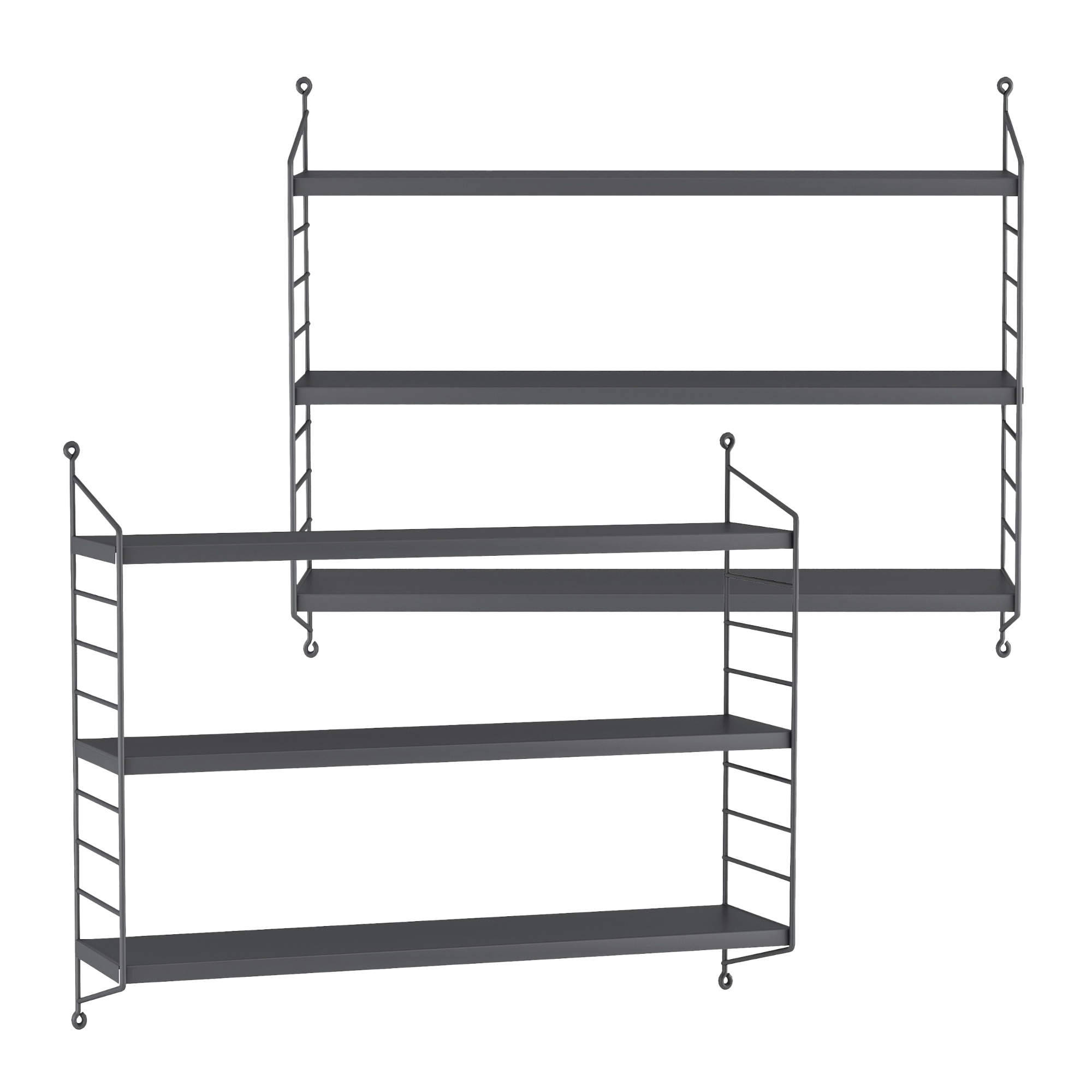 Set 2 rafturi de perete modulare din oțel, gri închis, 60 cm