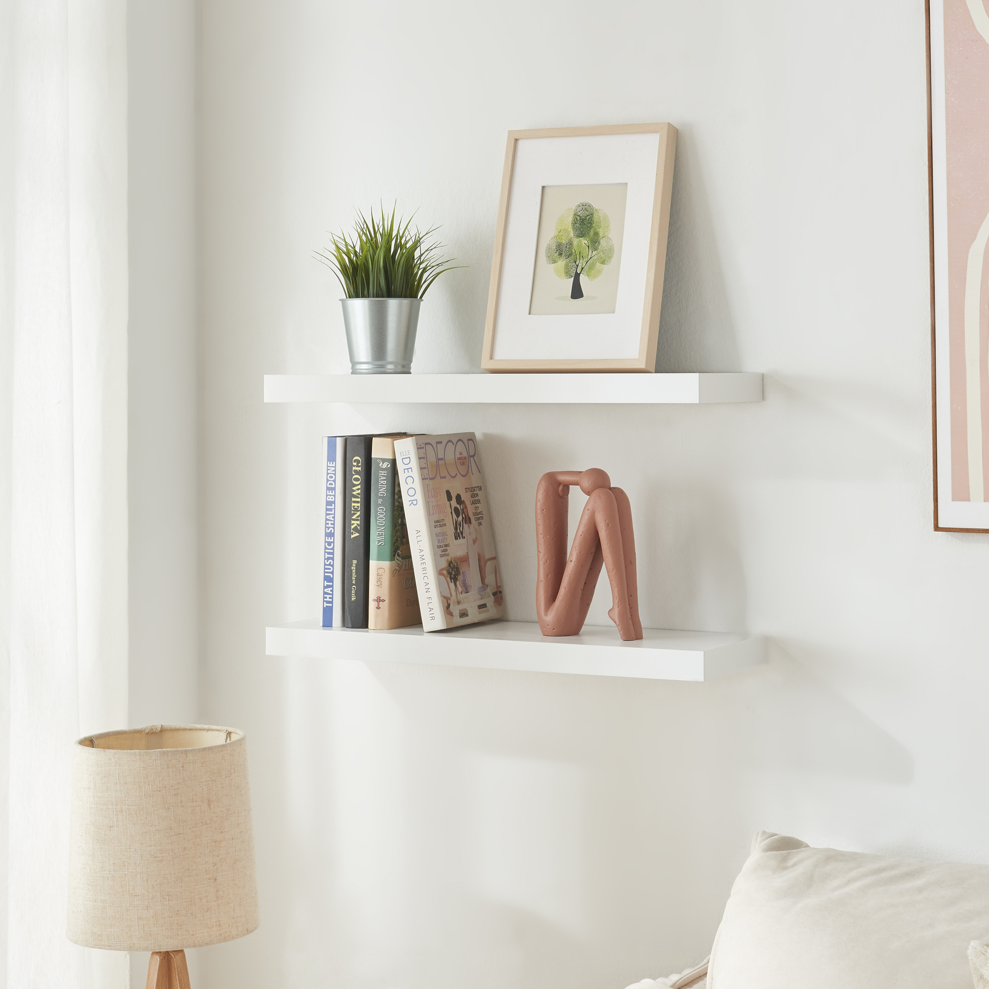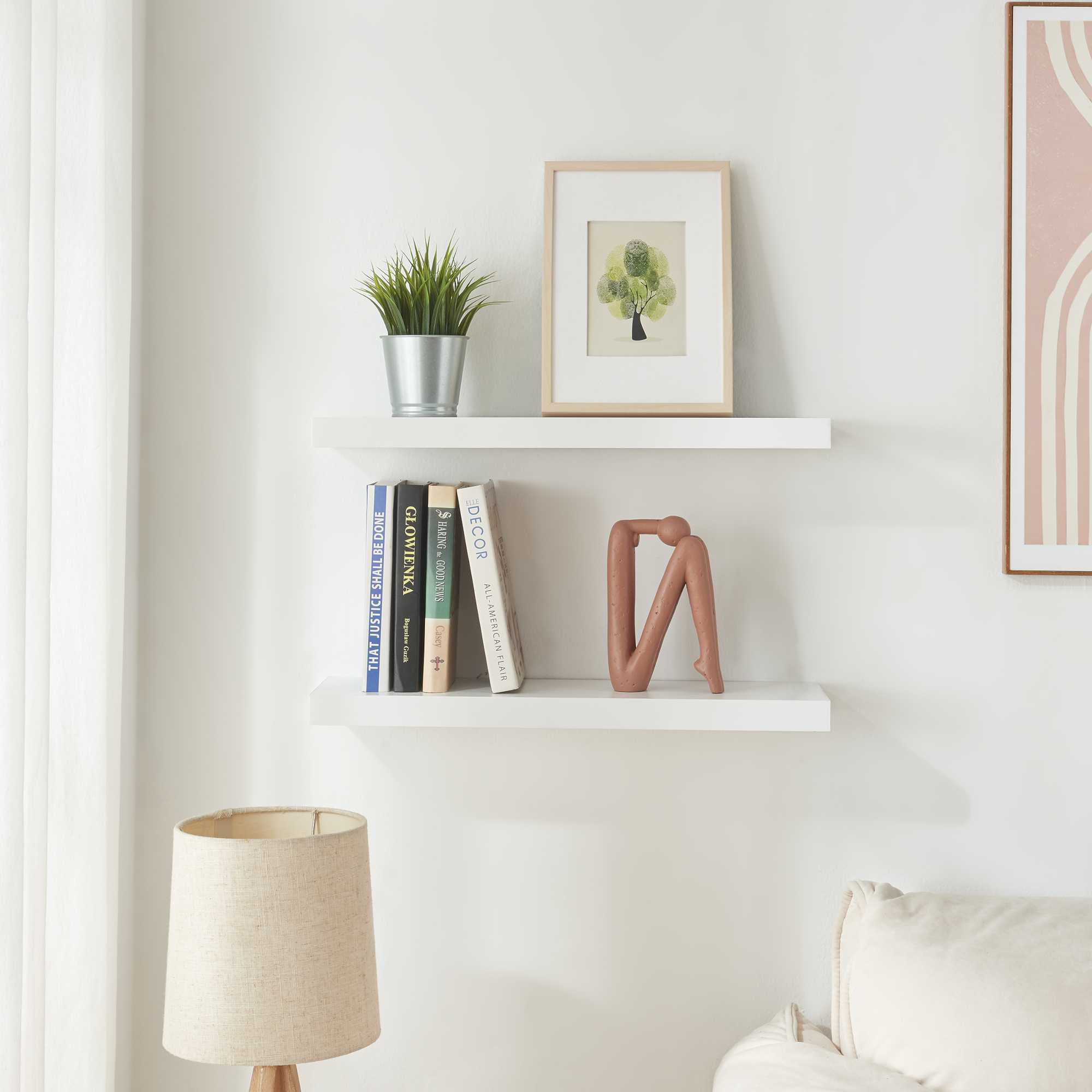 Aceste rafturi albe de perete sunt perfecte pentru a crea un colț decorativ aerisit și ordonat. În living pot susține plante și obiecte decorative, în bucătărie sunt utile pentru borcane sau căni, iar în baie pot fi folosite pentru produse cosmetice și accesorii. Aspectul minimalist le face ușor de asortat în amenajări moderne, scandinave sau clasice.