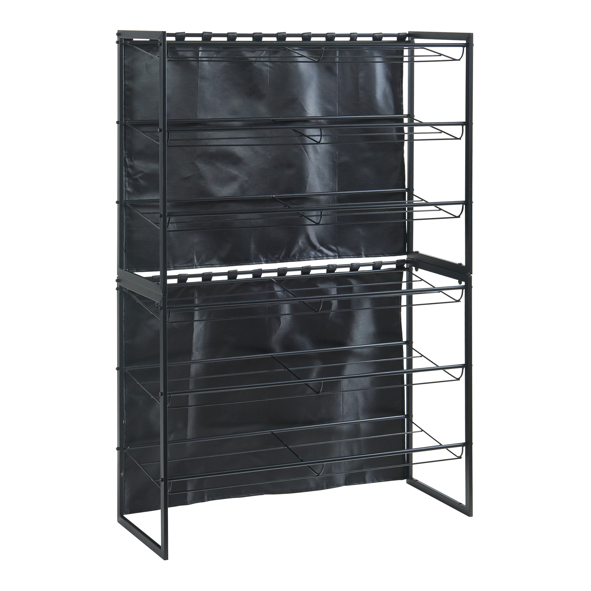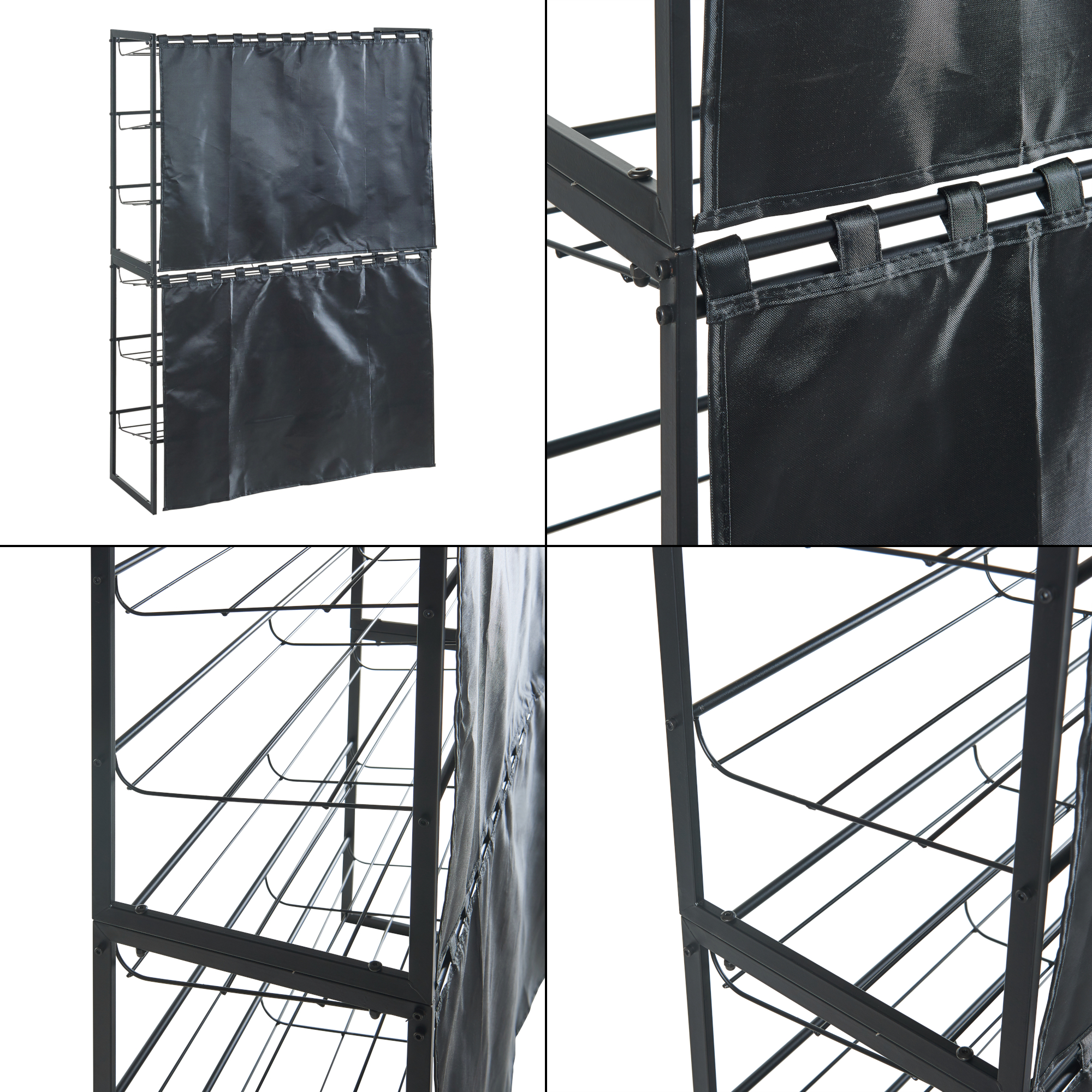 Set 2 rafturi pentru pantofi cu perdea, metal, negre, 80x32x60 cm