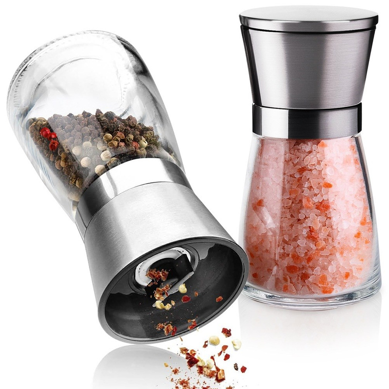 Adaugă gust proaspăt fiecărei rețete cu acest set de râșnițe manuale sare și piper (2 bucăți), cu design modern și corp din sticlă. Mecanismul ceramic reglabil îți permite să alegi granulația potrivită, de la fin la grosier, pentru piper boabe, sare grunjoasă sau alte condimente uscate.