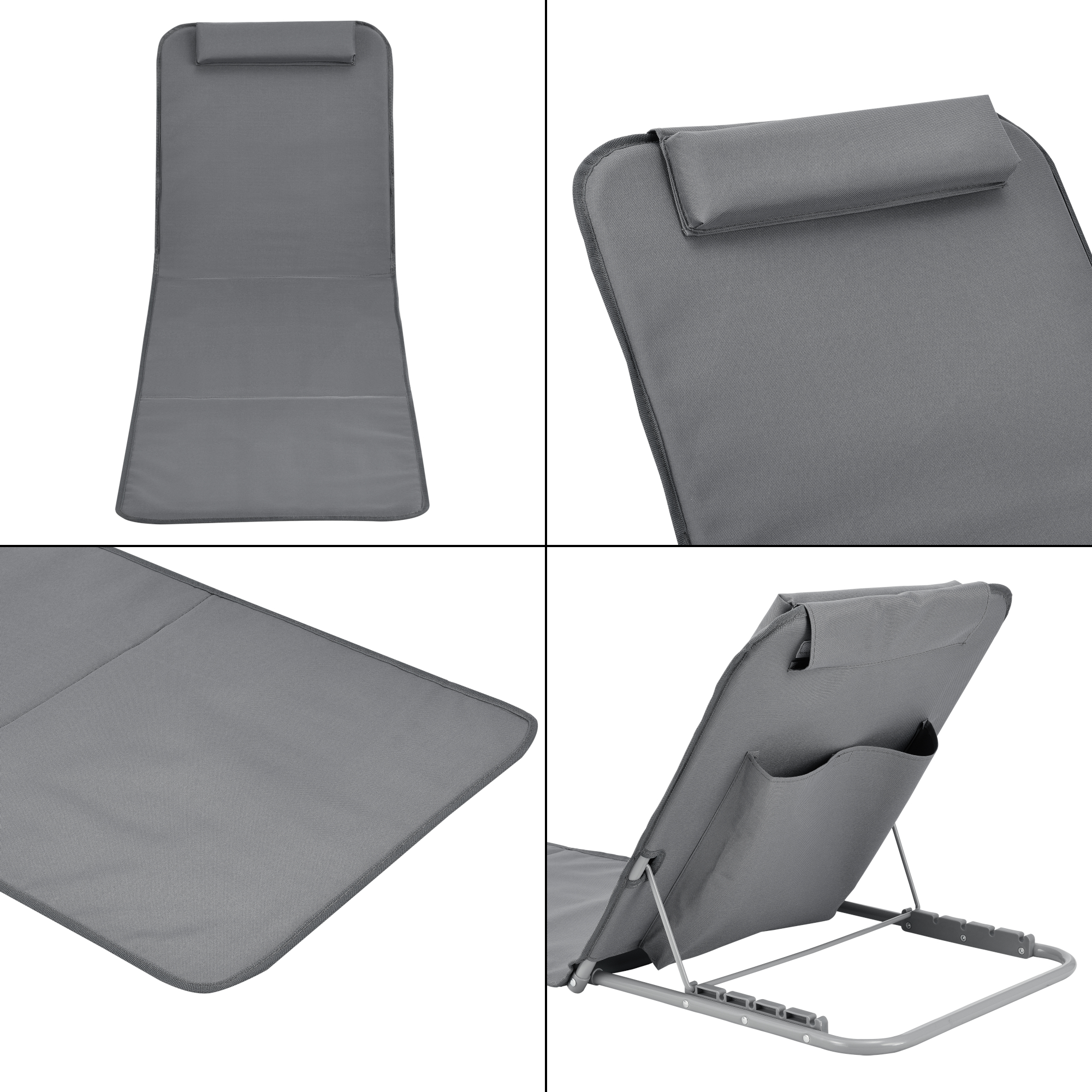 Fiecare saltea de plajă cu spătar reglabil este prevăzută cu spătar ajustabil în 5 trepte, astfel încât să îți găsești ușor poziția preferată pentru citit, bronzat sau relaxare. În plus, spătarul poate fi reglat până la 180°, pentru o poziție complet întinsă. Perna integrată oferă un plus de confort, iar cadrul metalic robust asigură stabilitate în utilizare.