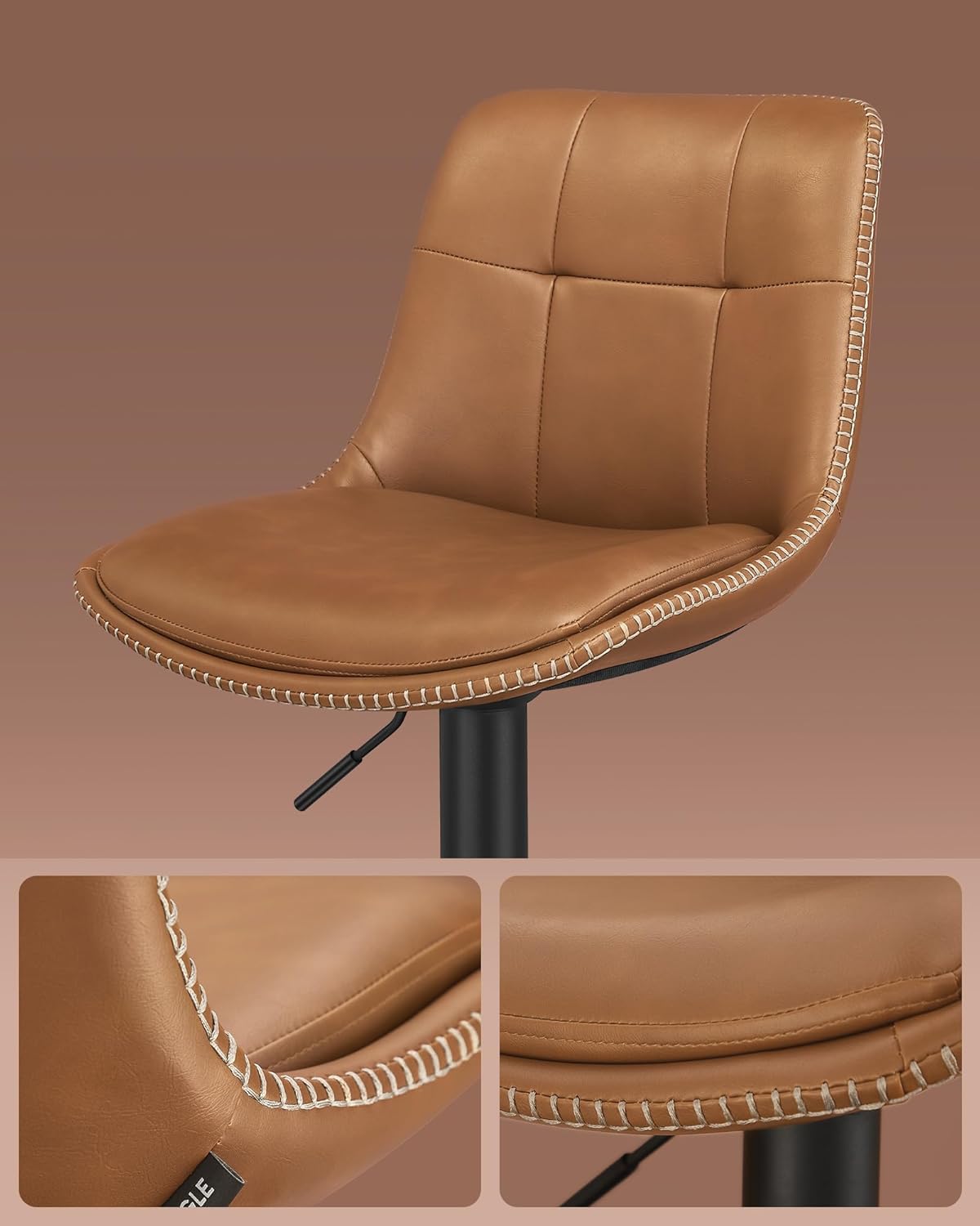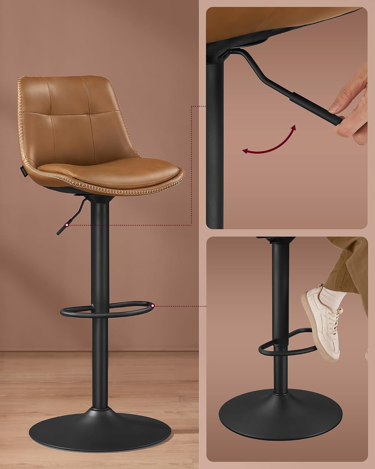 Set 2 scaune de bar reglabile VASAGLE, rotative 360°, PU maro caramel