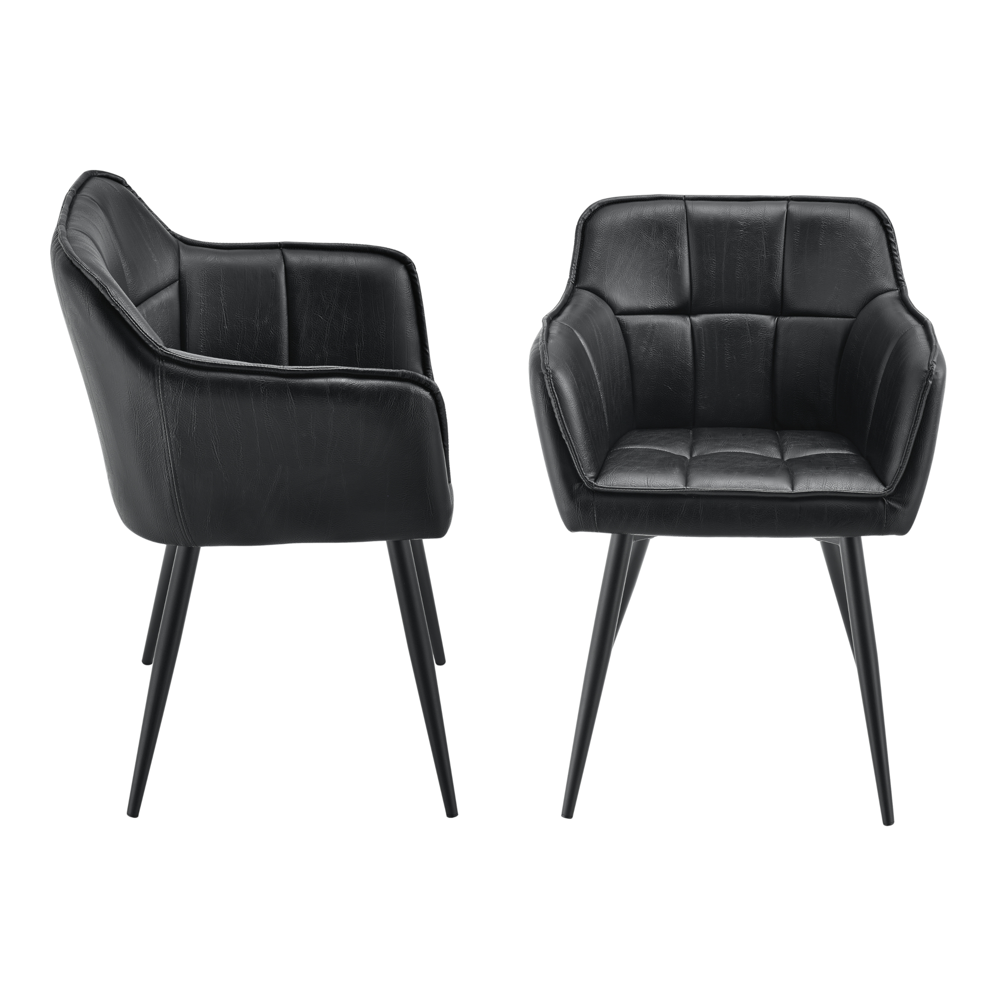 Set 2 scaune dining Birmingham negre cu brațe și tapițerie confortabilă