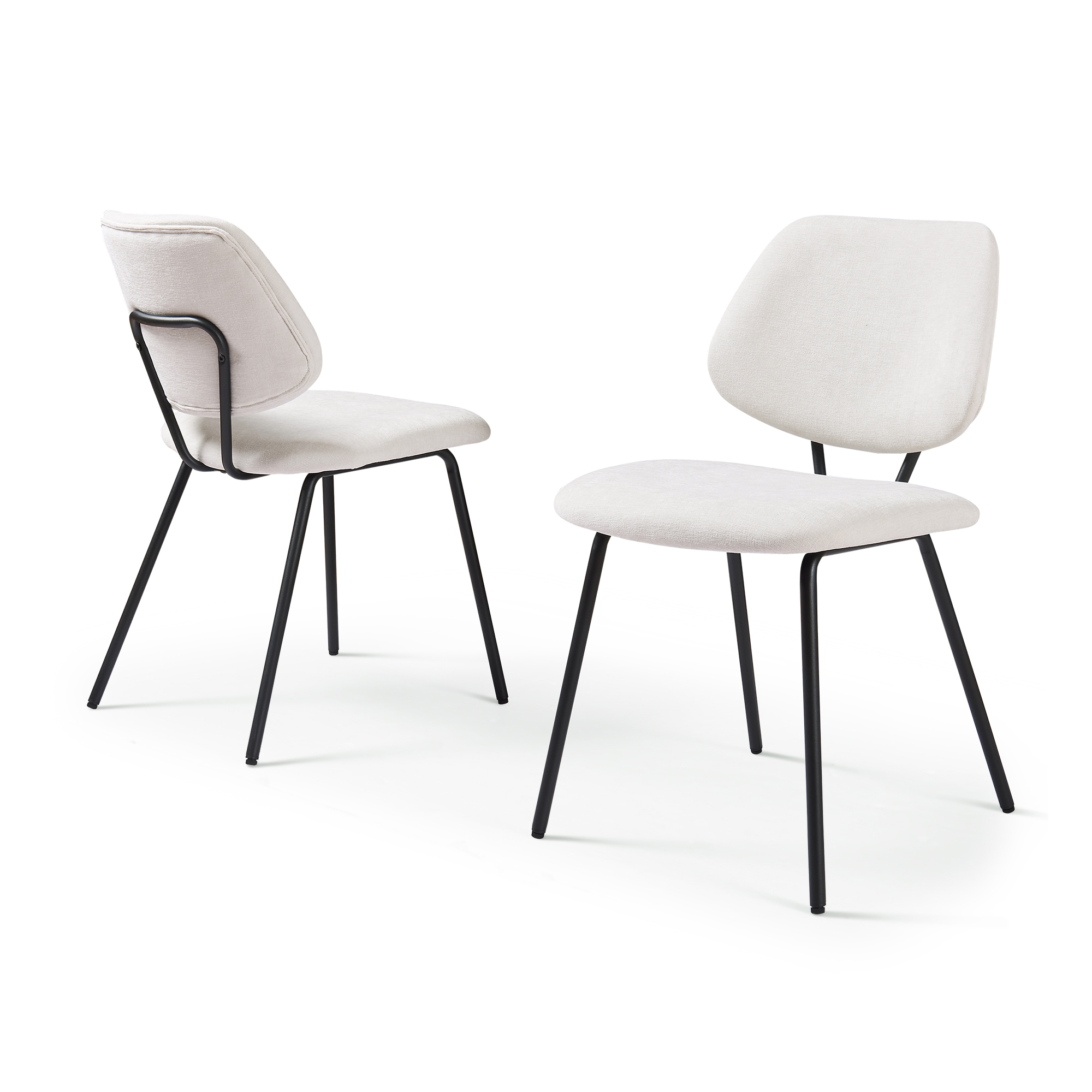 Set 2 scaune dining Köma bej tapițate cu picioare metalice negre