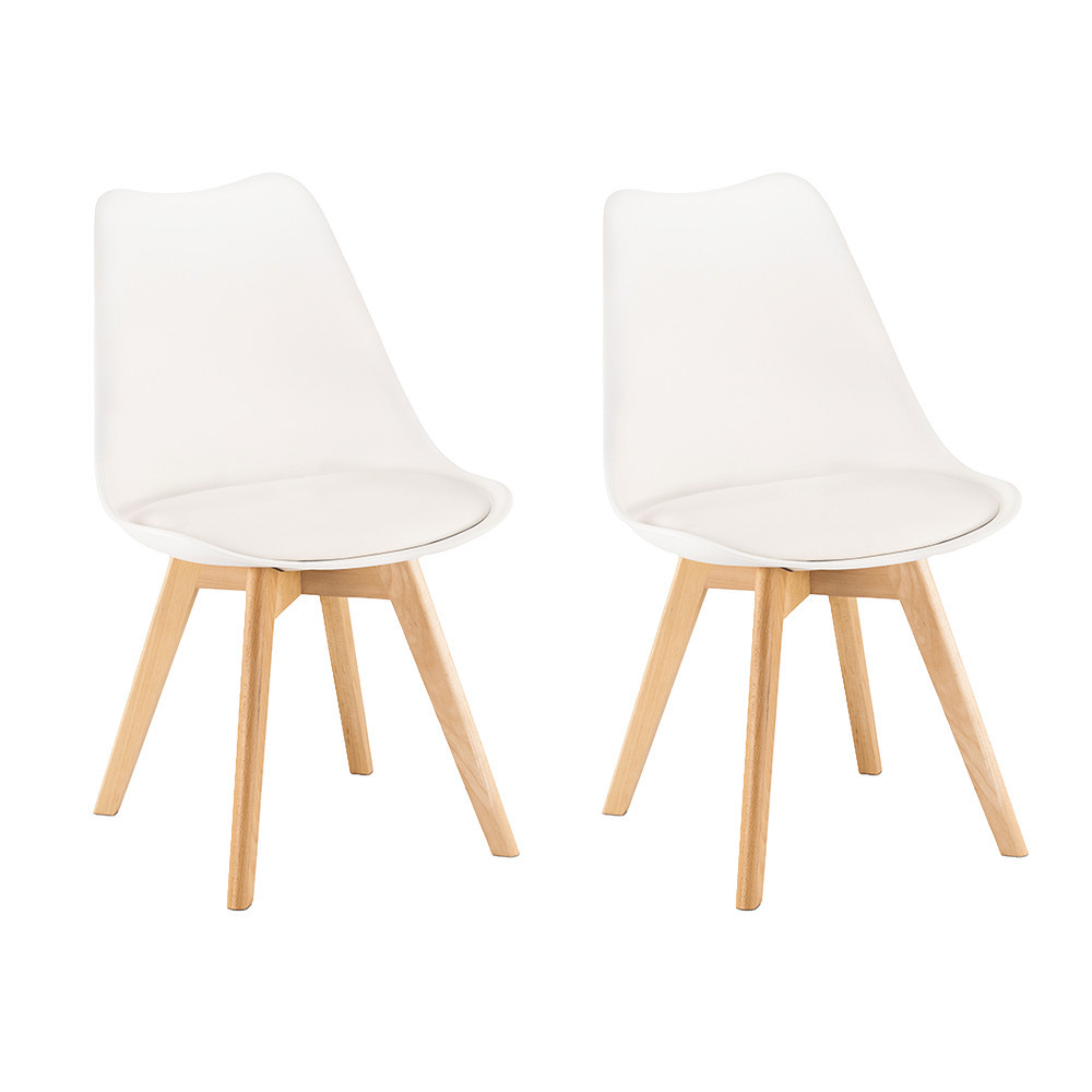 Set 2 scaune dining Leziter Silla, albe, cu picioare din lemn fag