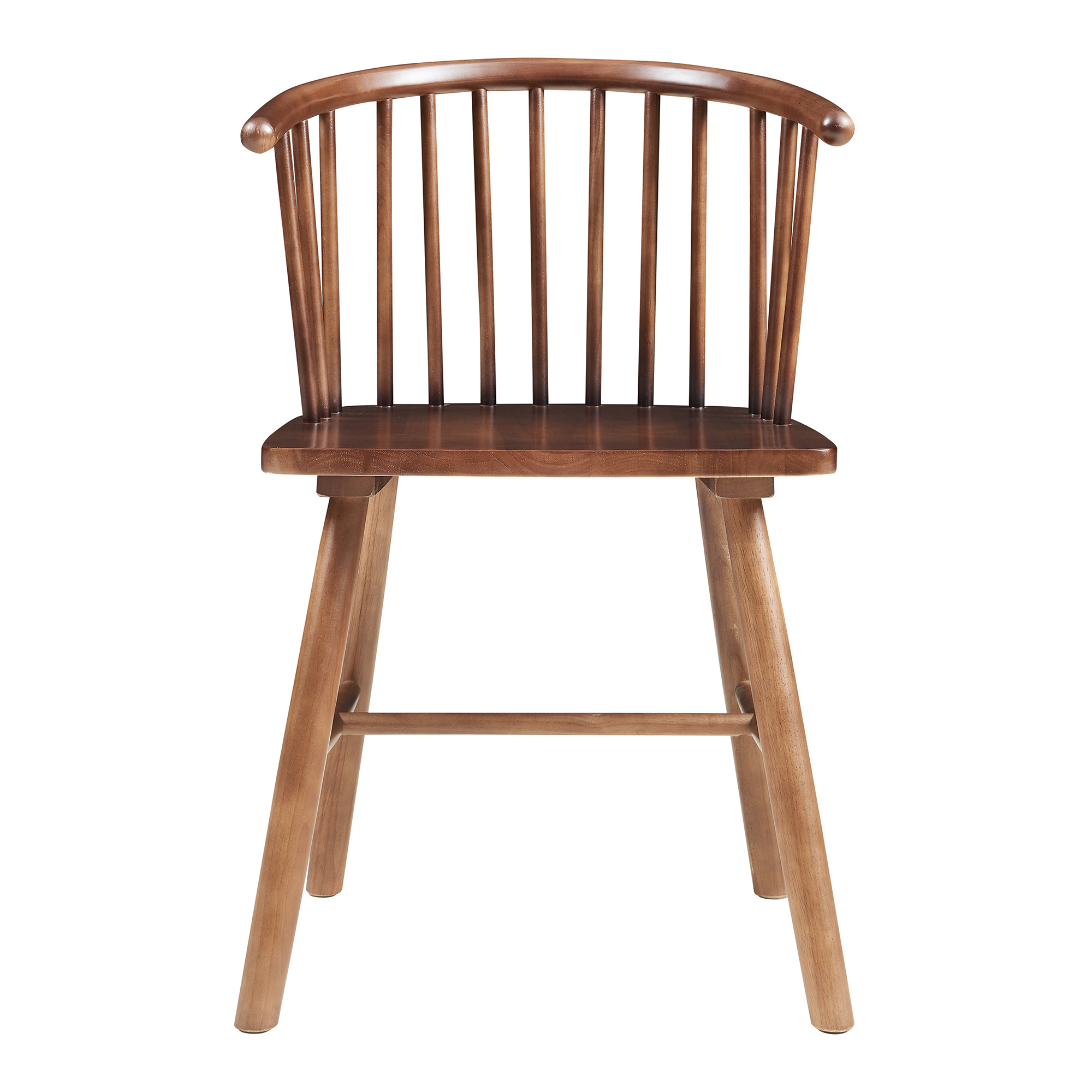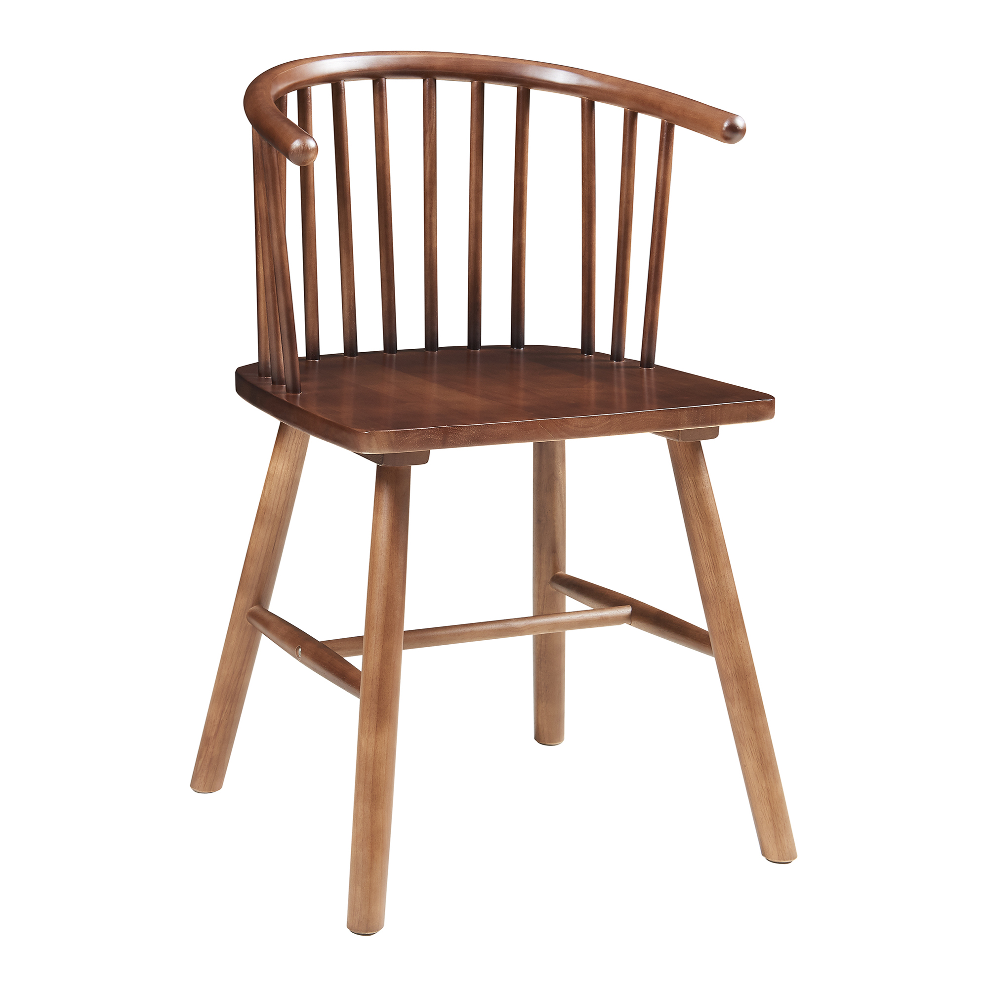 Adauga un plus de stil si confort in casa ta cu acest set de 2 scaune dining Stami, realizate din lemn de arbore de cauciuc si finisate intr-o eleganta nuanta nuc. Designul lor atemporal, cu spatar curbat si bare verticale, se integreaza armonios in zona de dining, bucatarie, living sau chiar in biroul de acasa.