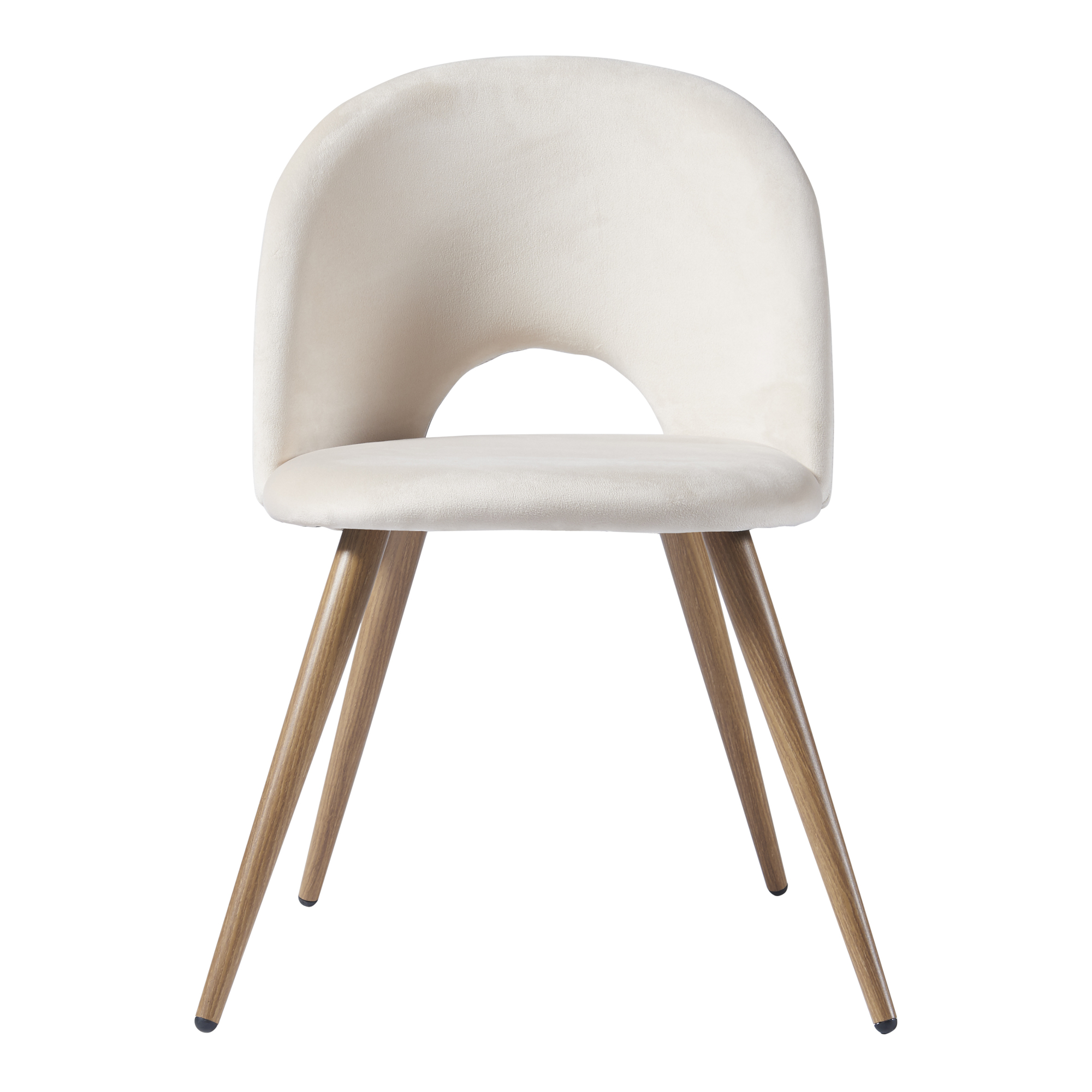 Sezutul captusit si tapiteria din material cu aspect de catifea ofera o experienta placuta la utilizare, fie ca serviti mesele zilnice, fie ca petreceti timp alaturi de familie si prieteni. Cele patru picioare rezistente asigura o buna stabilitate, iar nuanta cu aspect de lemn completeaza armonios stilul cald si primitor al incaperii.