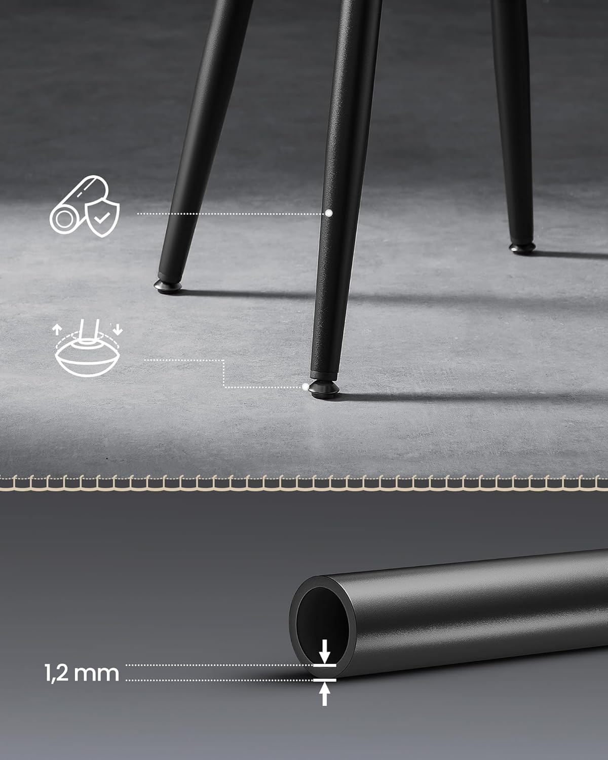 Sezutul moale, umplut cu spuma, asigura confort la utilizare indelungata, iar cadrul din otel ofera stabilitate si rezistenta. Datorita designului versatil, aceste scaune dining negre se potrivesc usor in interioare moderne, industriale sau elegante. Suprafata este usor de curatat, iar montajul se realizeaza rapid.