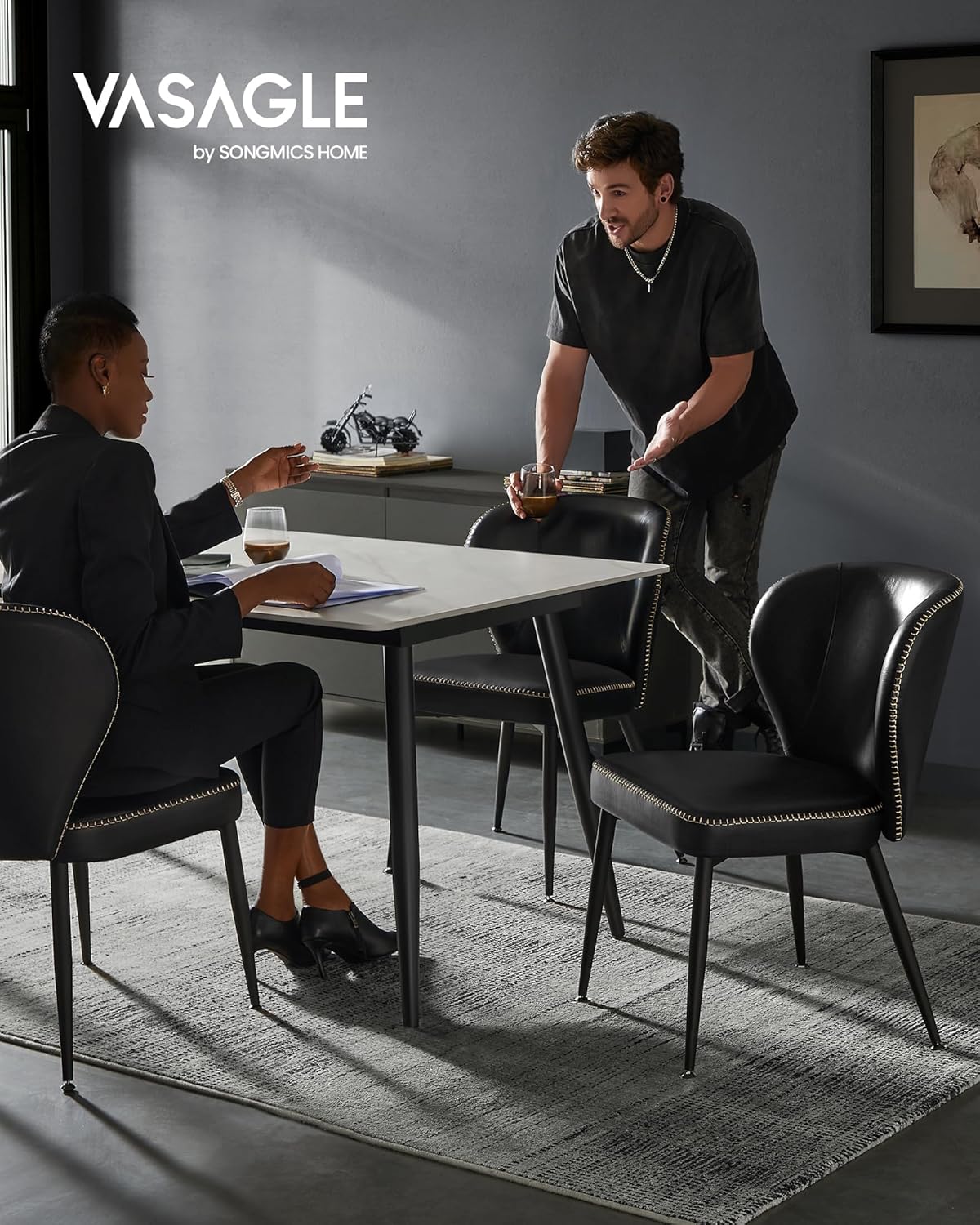 Set 2 scaune dining VASAGLE EKHO, piele ecologica, negre, 52x55x79 cm