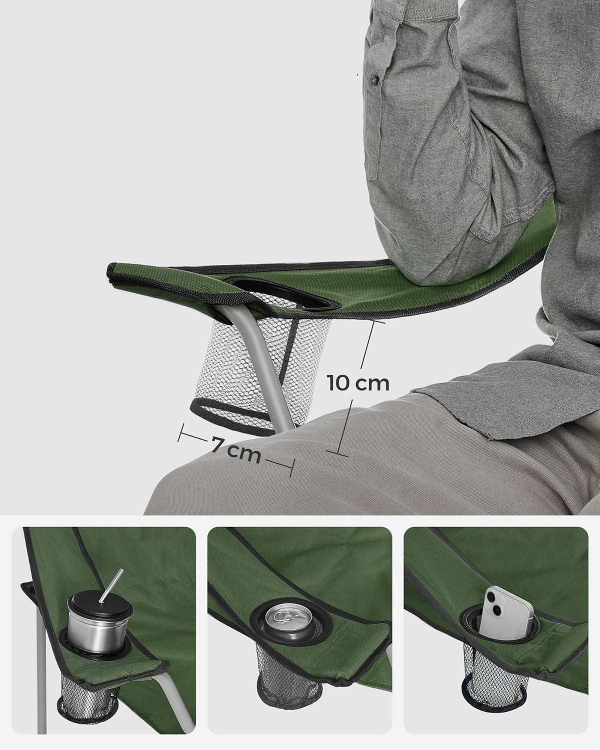 Set 2 scaune pliabile de camping SONGMICS cu suport pahar si husa, verzi