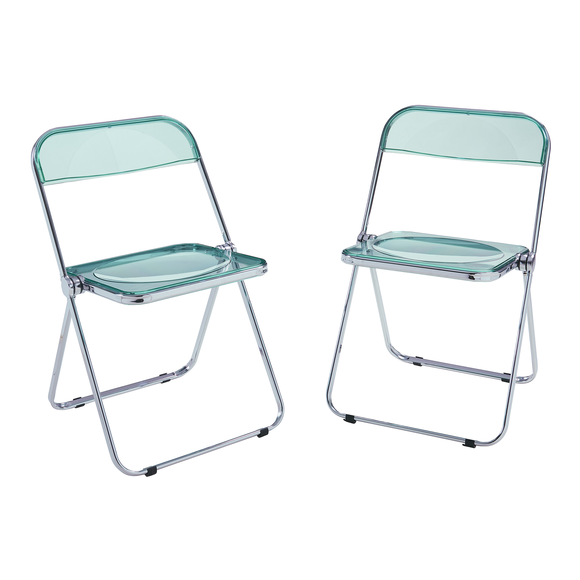 Set 2 scaune pliabile Pornainen, mint transparent, cadru metalic