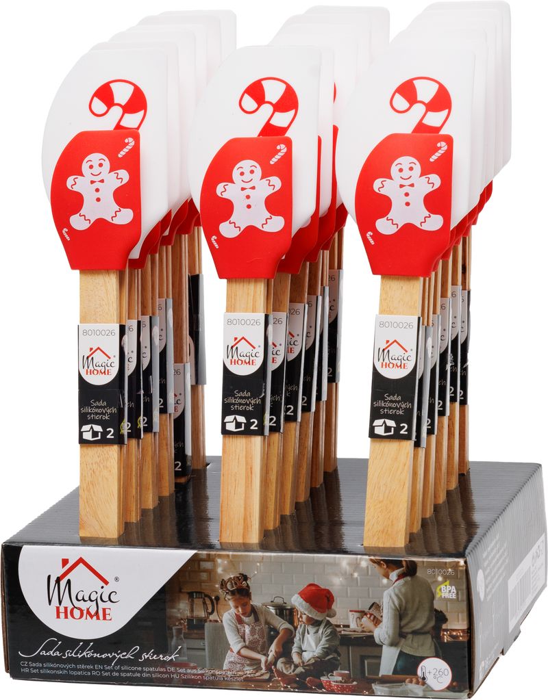 Setul de spatule din silicon pentru copt si gatit de la MagicHome aduce un plus de utilitate si farmec festiv in orice bucatarie. Cu un design de Craciun in nuante rosu/alb si imprimeuri tematice, aceste spatule sunt ideale pentru amestecarea aluatului, intinderea cremelor, baterea compozitiilor sau manipularea alimentelor in timpul gatitului.