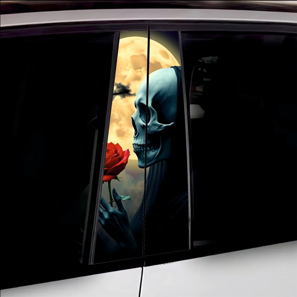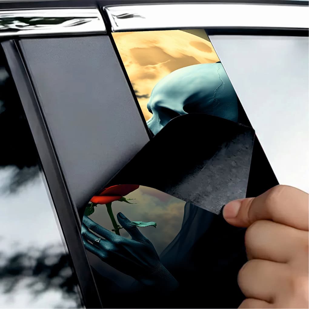 Set 2 folii printate outdoor pentru colantarea stâlpilor ușilor autoturismului dvs. Folia imprimată cu EcoSolvent Outdoor aderă pe orice suprafață plană, netedă. În cazul suprafețelor rugoase, aderența produsului va scadea considerabil.