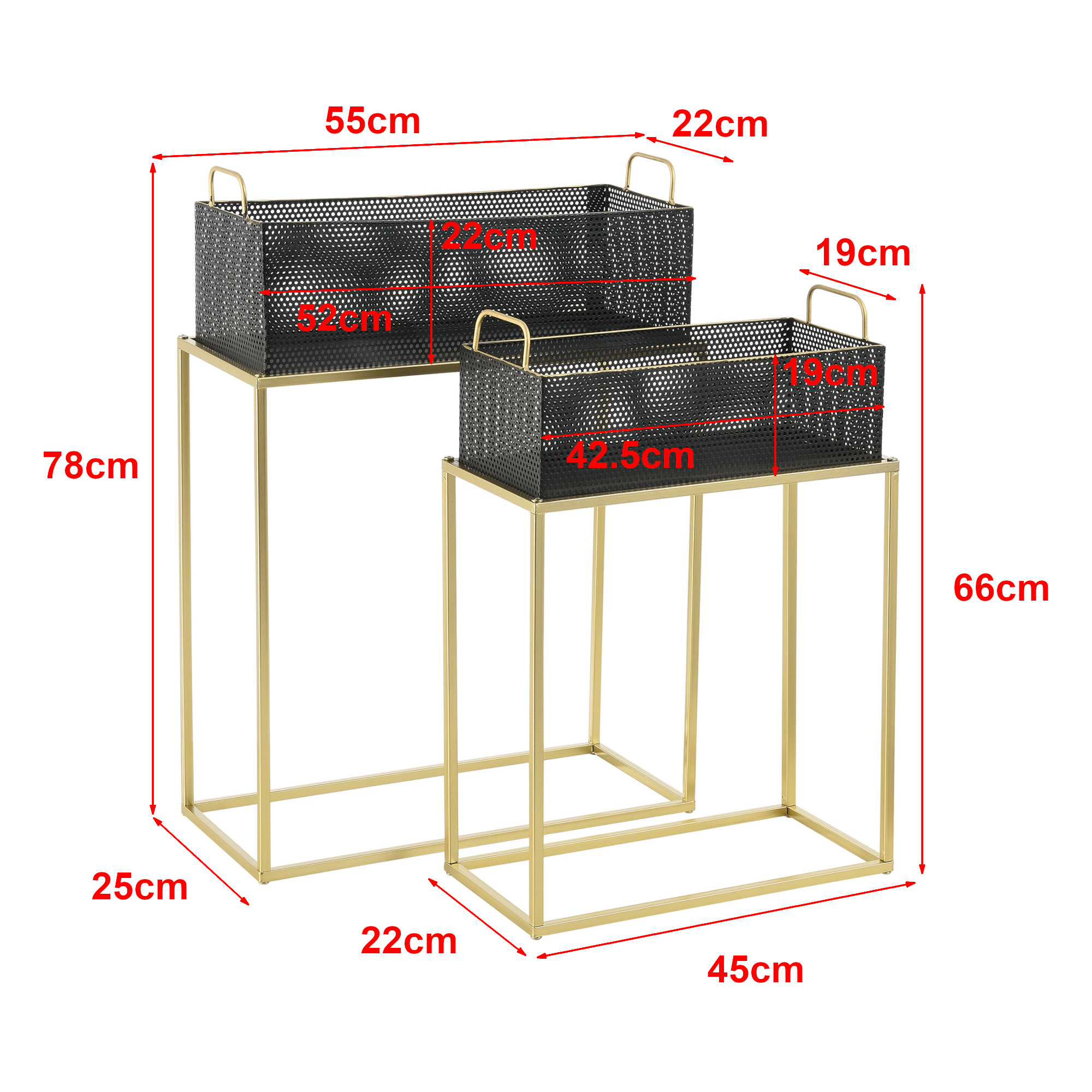 Realizate din metal, suporturile sunt potrivite pentru plante decorative, flori naturale sau aranjamente verzi, oferind un aspect aerisit și sofisticat. Cele două dimensiuni diferite permit o amenajare armonioasă și practică, atât împreună, cât și separat.