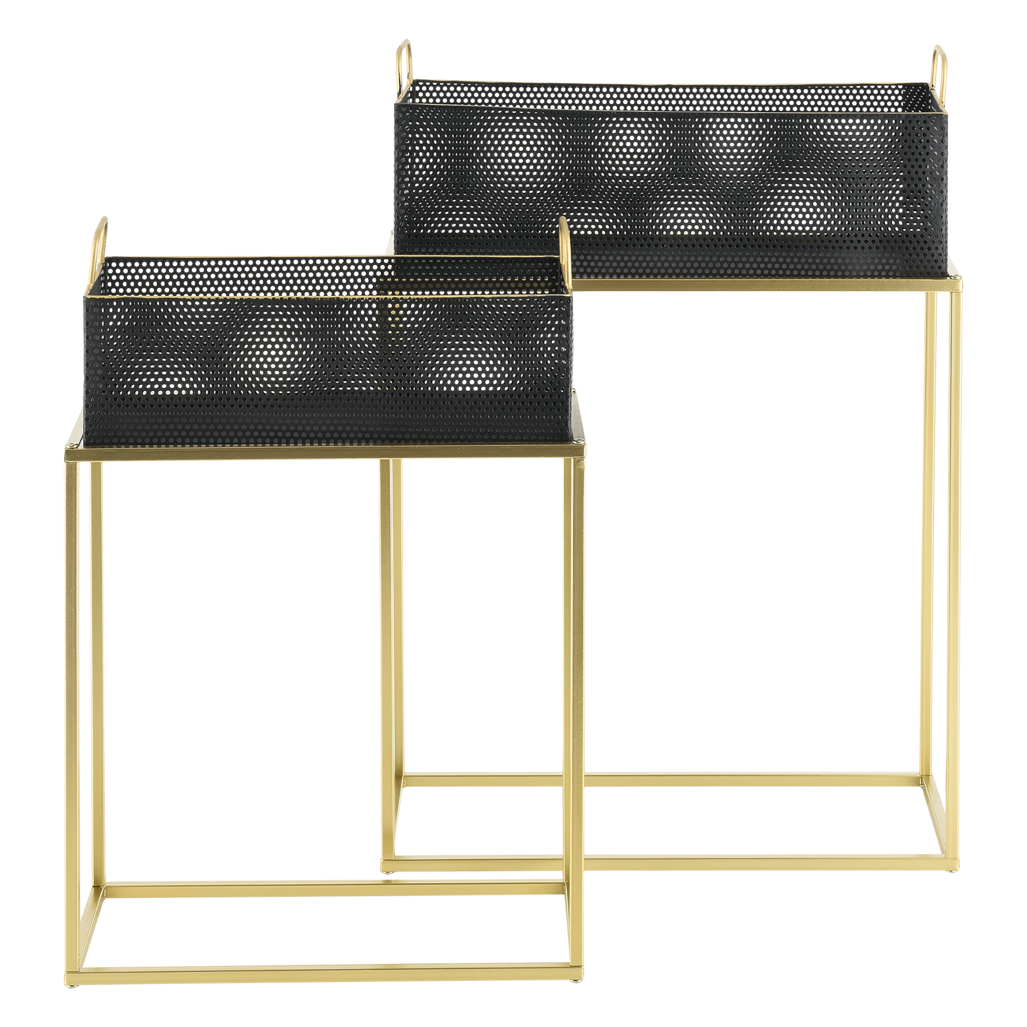 Setul de 2 suporturi pentru flori Jurbise aduce un plus de stil și eleganță în orice locuință. Cu un design modern, în combinație rafinată de auriu și negru, aceste suporturi pentru ghivece sunt ideale pentru decorarea livingului, holului sau a unui colț luminos din casă.