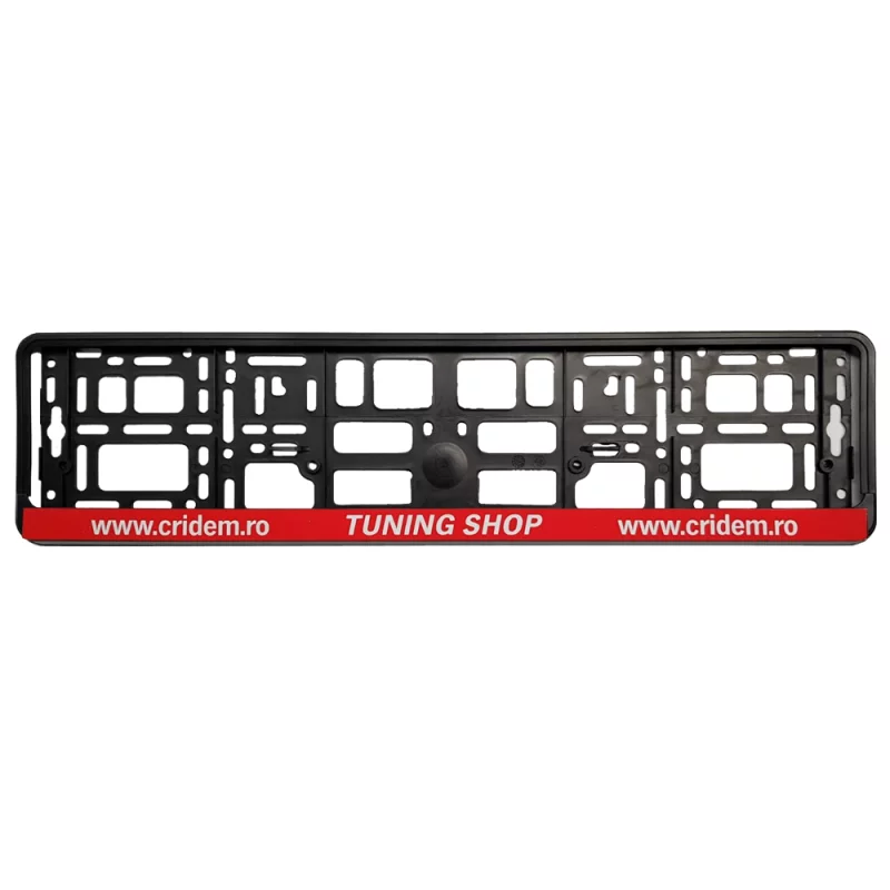 Alege un set de suporturi pentru număr de înmatriculare cu design practic și aspect sportiv, potrivit pentru mașinile echipate cu plăci standard din România și Uniunea Europeană. Acest model Tuning Shop are fundal roșu cu ramă neagră, oferind un plus de stil și o fixare sigură pentru numerele auto.