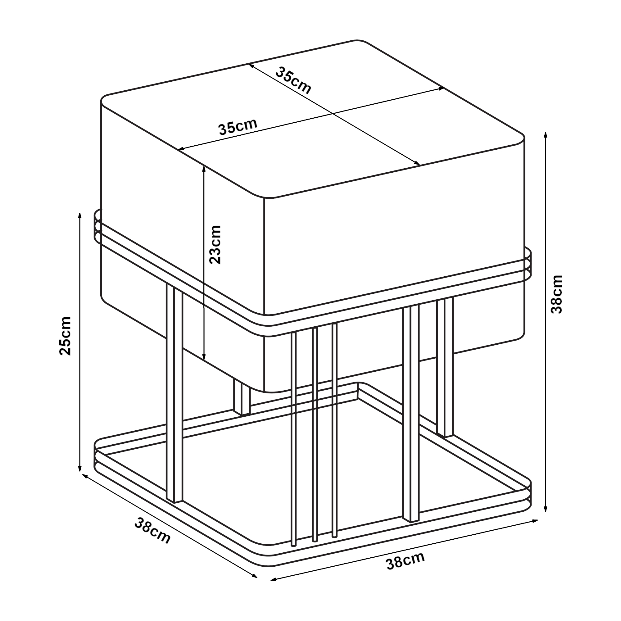 - Dimensiuni totale (Î x l x A): 38 x 38 x 38 cm