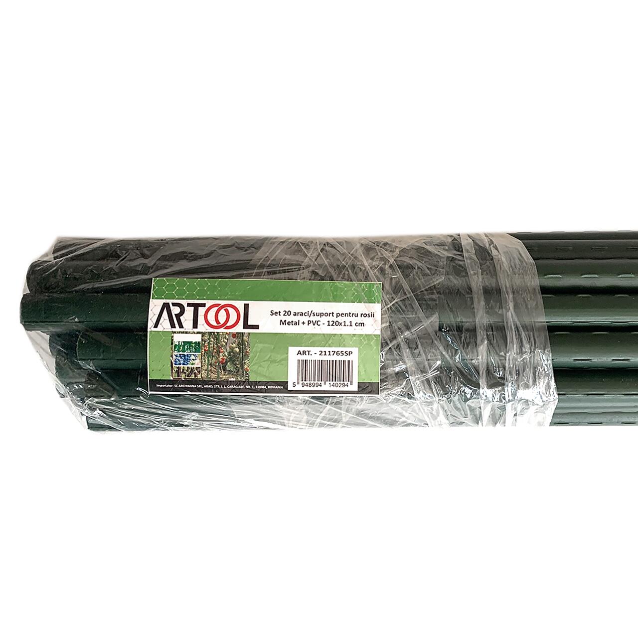 Set 20 araci/suport pentru rosii, castraveti, fasole, metal + PVC, verde, 120x1.1 cm, Artool GartenVIP DiyLine