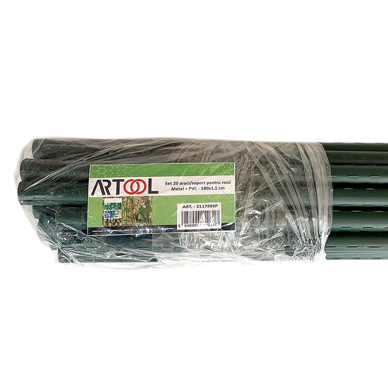 Set 20 araci/suport pentru rosii, castraveti, fasole, metal + PVC, verde, 180x1.1 cm, Artool