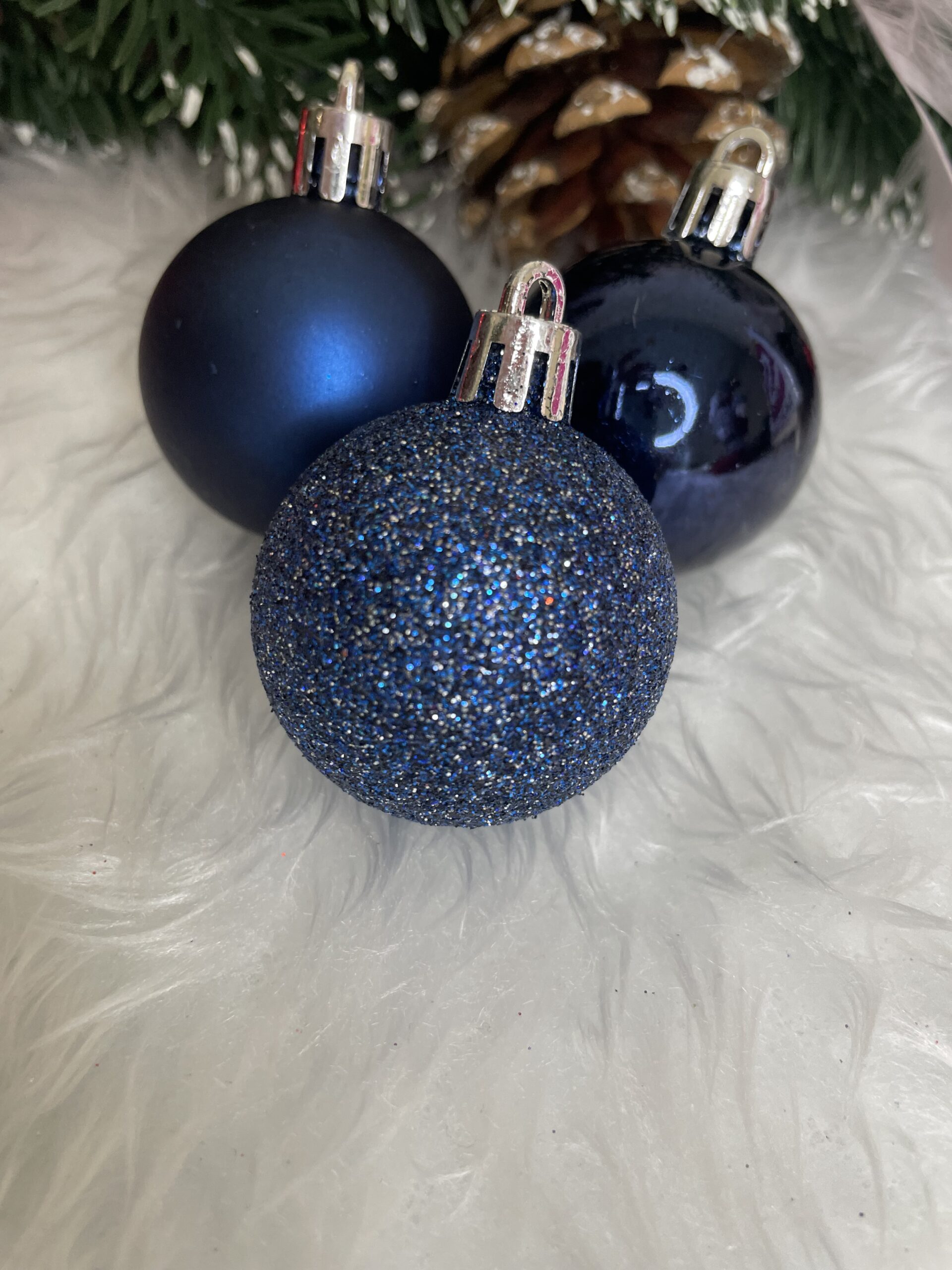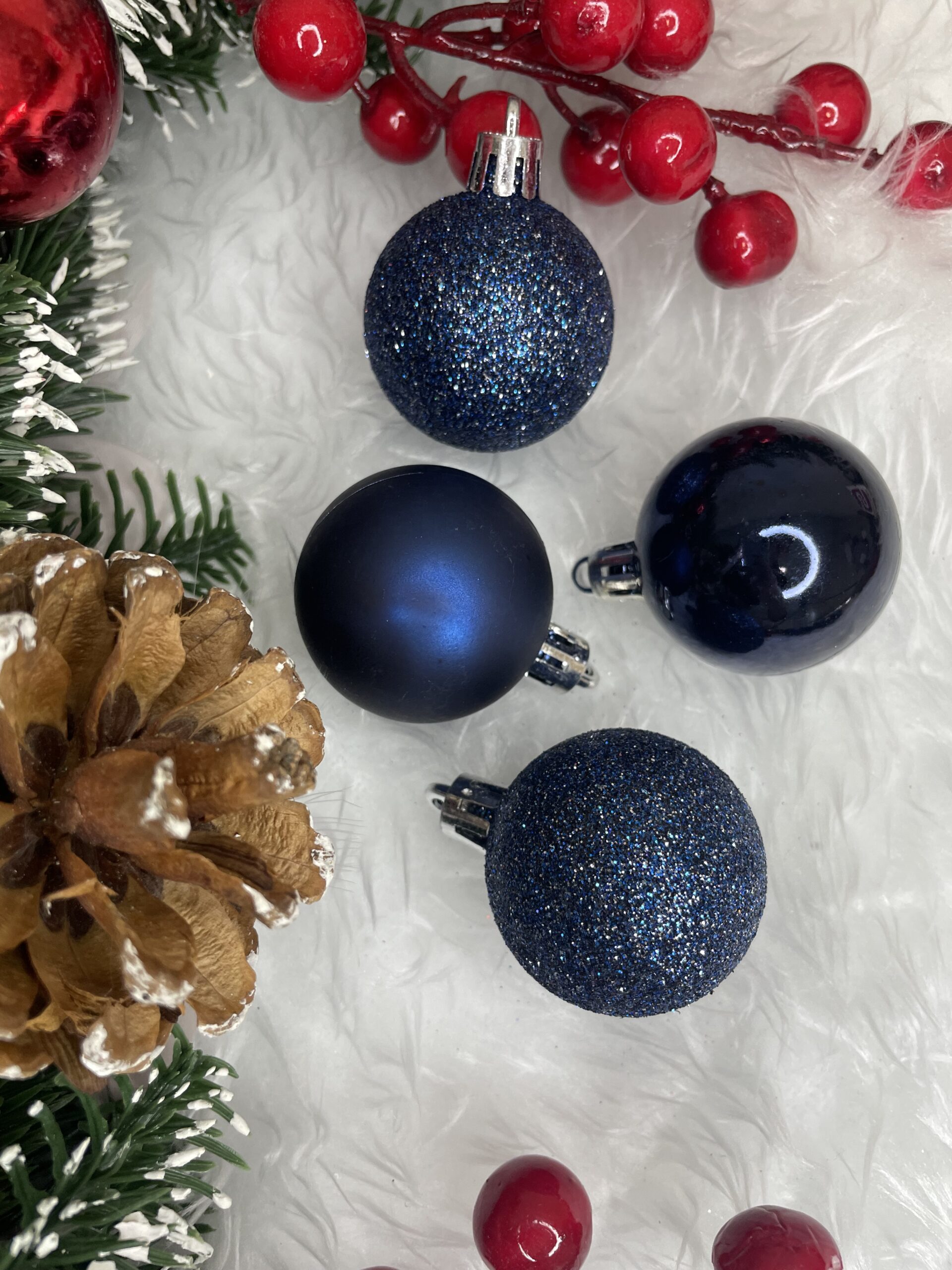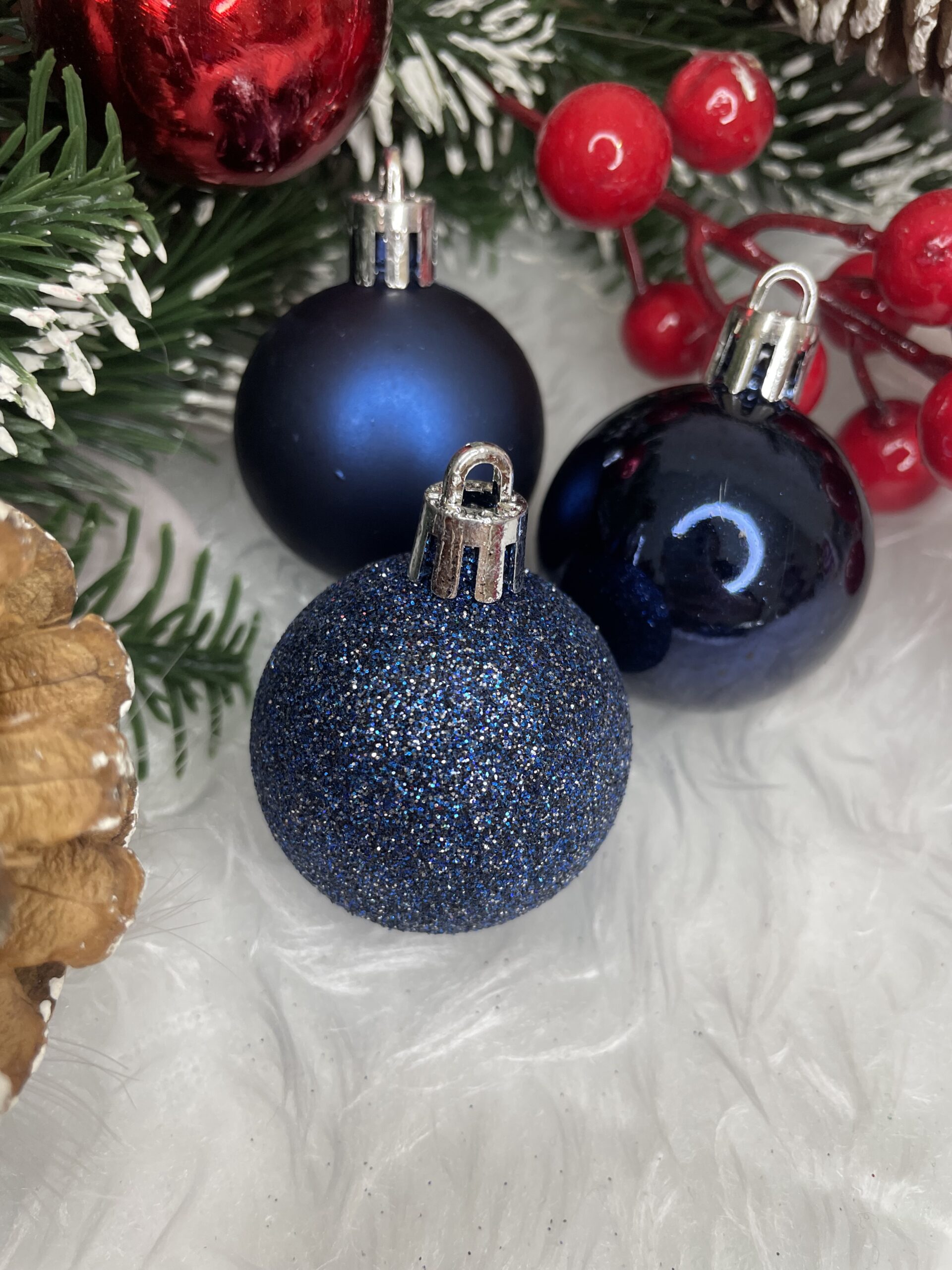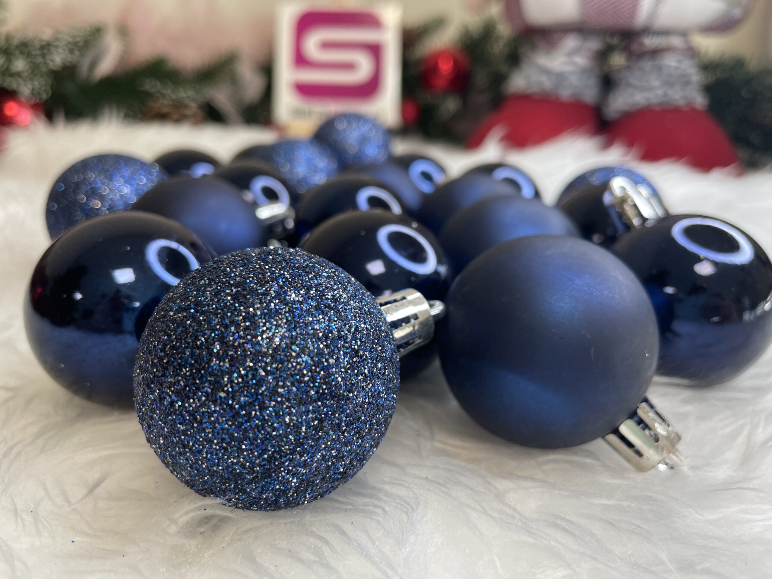 Adauga un plus de eleganta bradului cu acest set de globuri de Craciun in nuanta albastru inchis, potrivit pentru decoruri festive clasice sau moderne. Cele 20 de globuri au diametrul de 4 cm si vin in 3 finisaje atractive: mat, cu sclipici si lucios, pentru un efect vizual bogat si armonios. Fiind realizate din plastic incasabil, sunt o alegere practica pentru casele cu copii sau animale de companie.