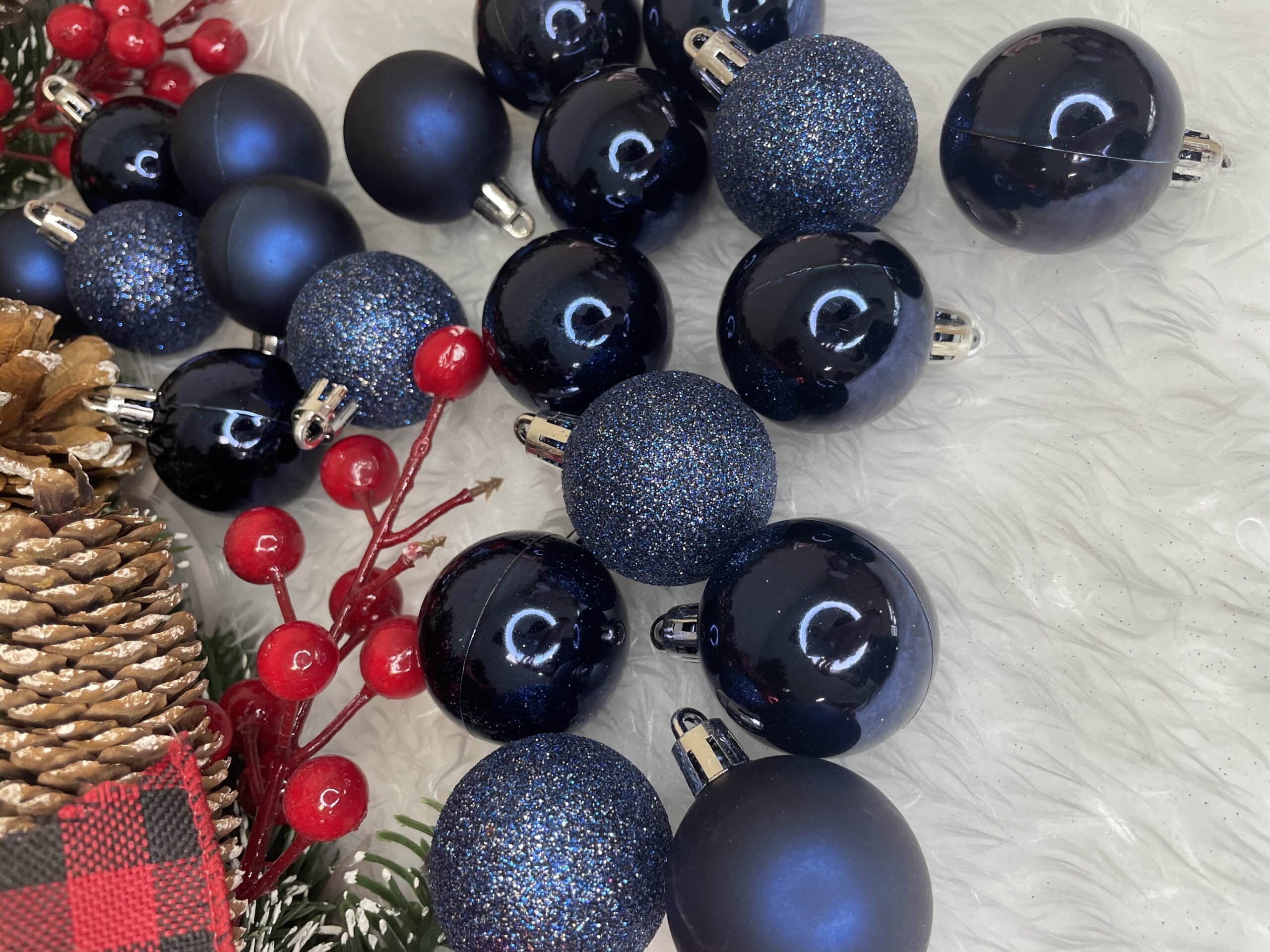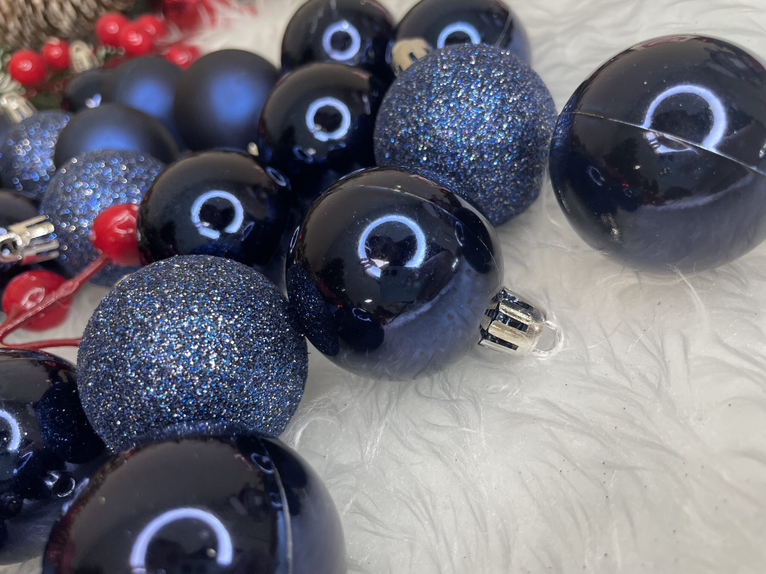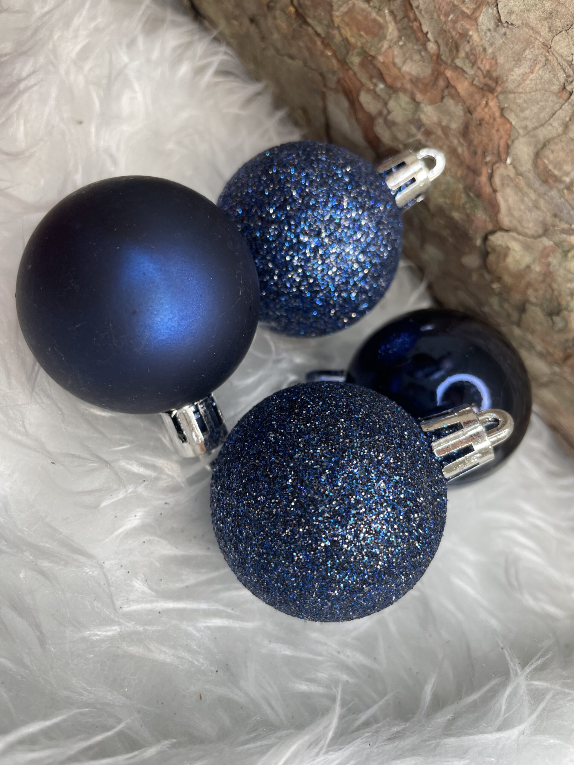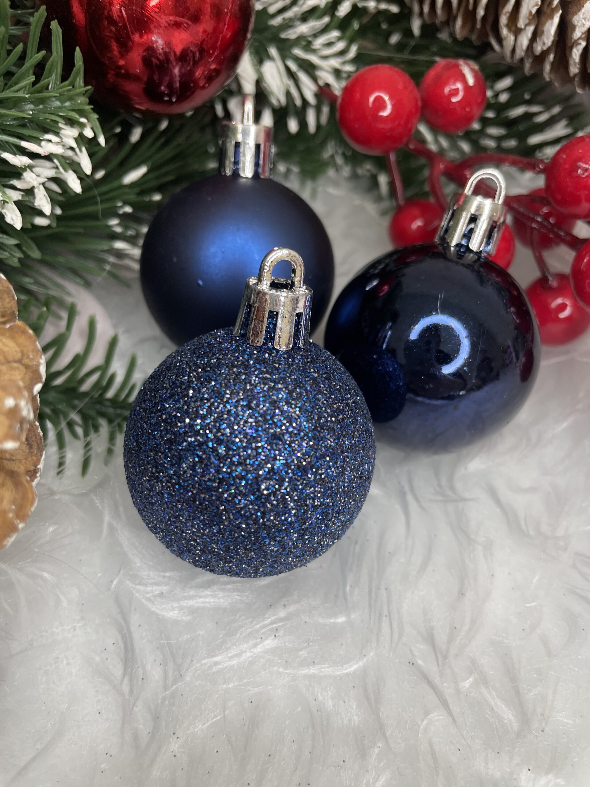 Adauga un plus de eleganta bradului cu acest set de globuri de Craciun in nuanta albastru inchis, potrivit pentru decoruri festive clasice sau moderne. Cele 20 de globuri au diametrul de 4 cm si vin in 3 finisaje atractive: mat, cu sclipici si lucios, pentru un efect vizual bogat si armonios. Fiind realizate din plastic incasabil, sunt o alegere practica pentru casele cu copii sau animale de companie.