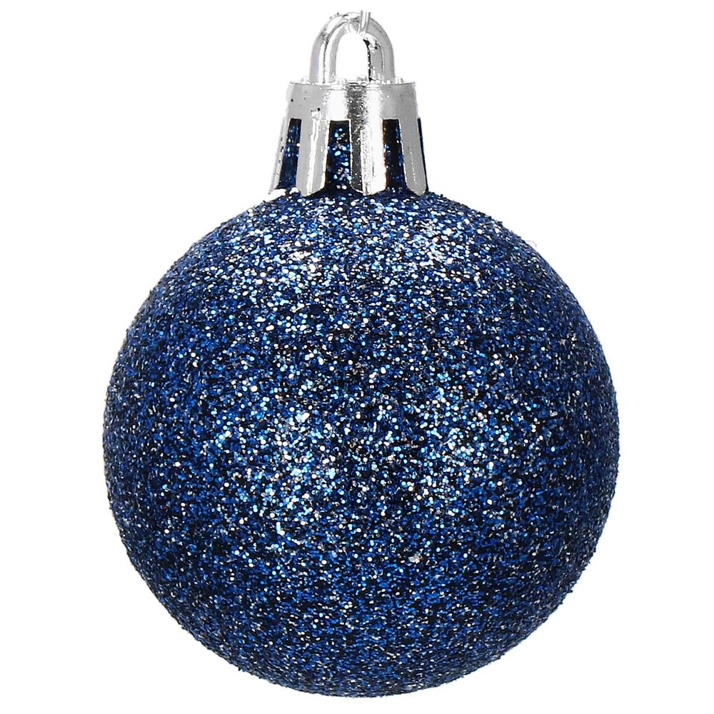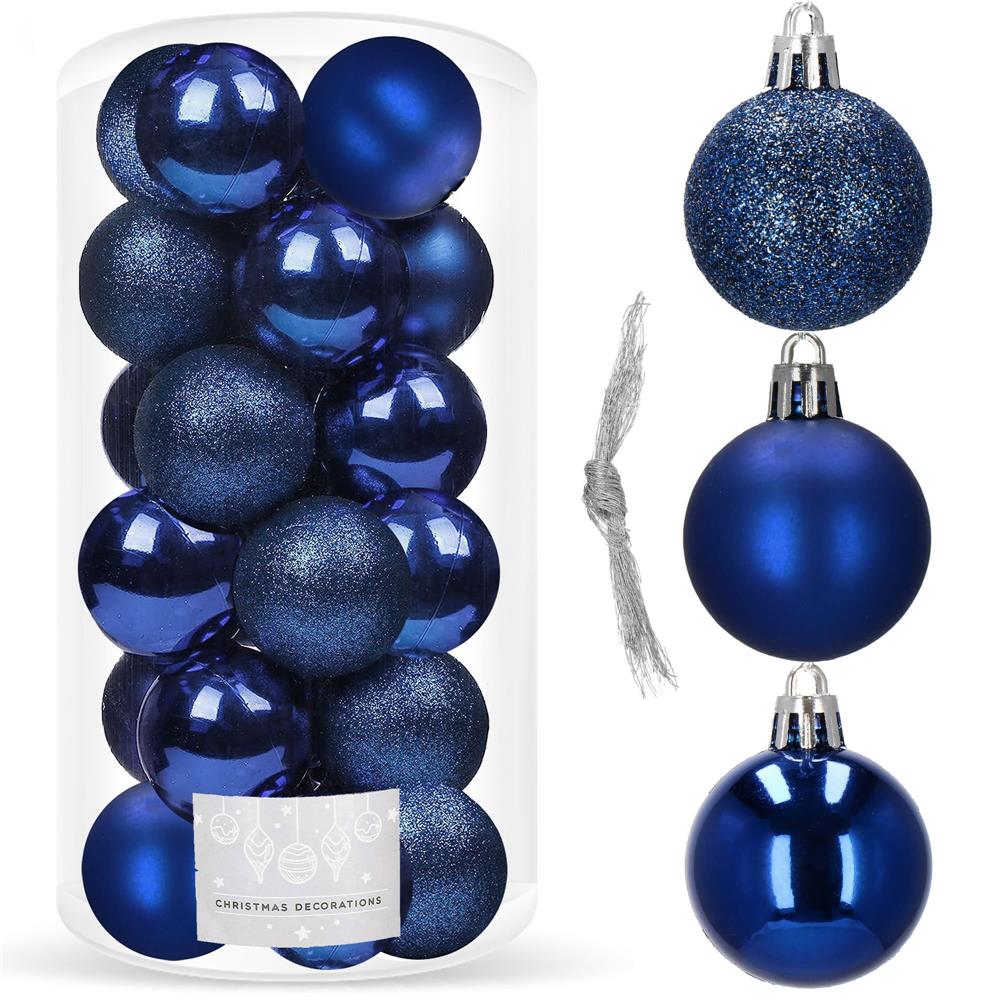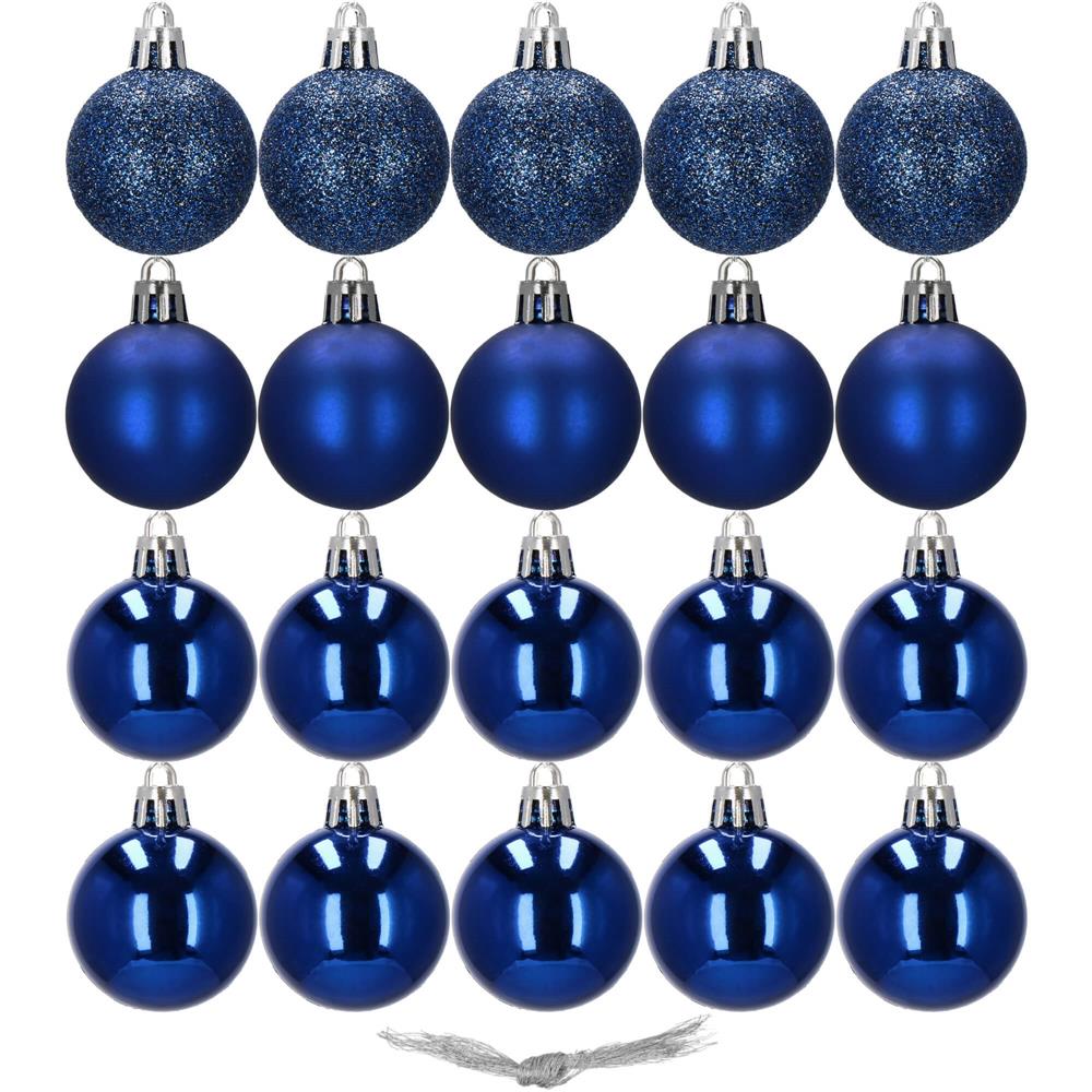 Set 20 globuri de Craciun albastre, 3 modele, 4 cm, incasabile