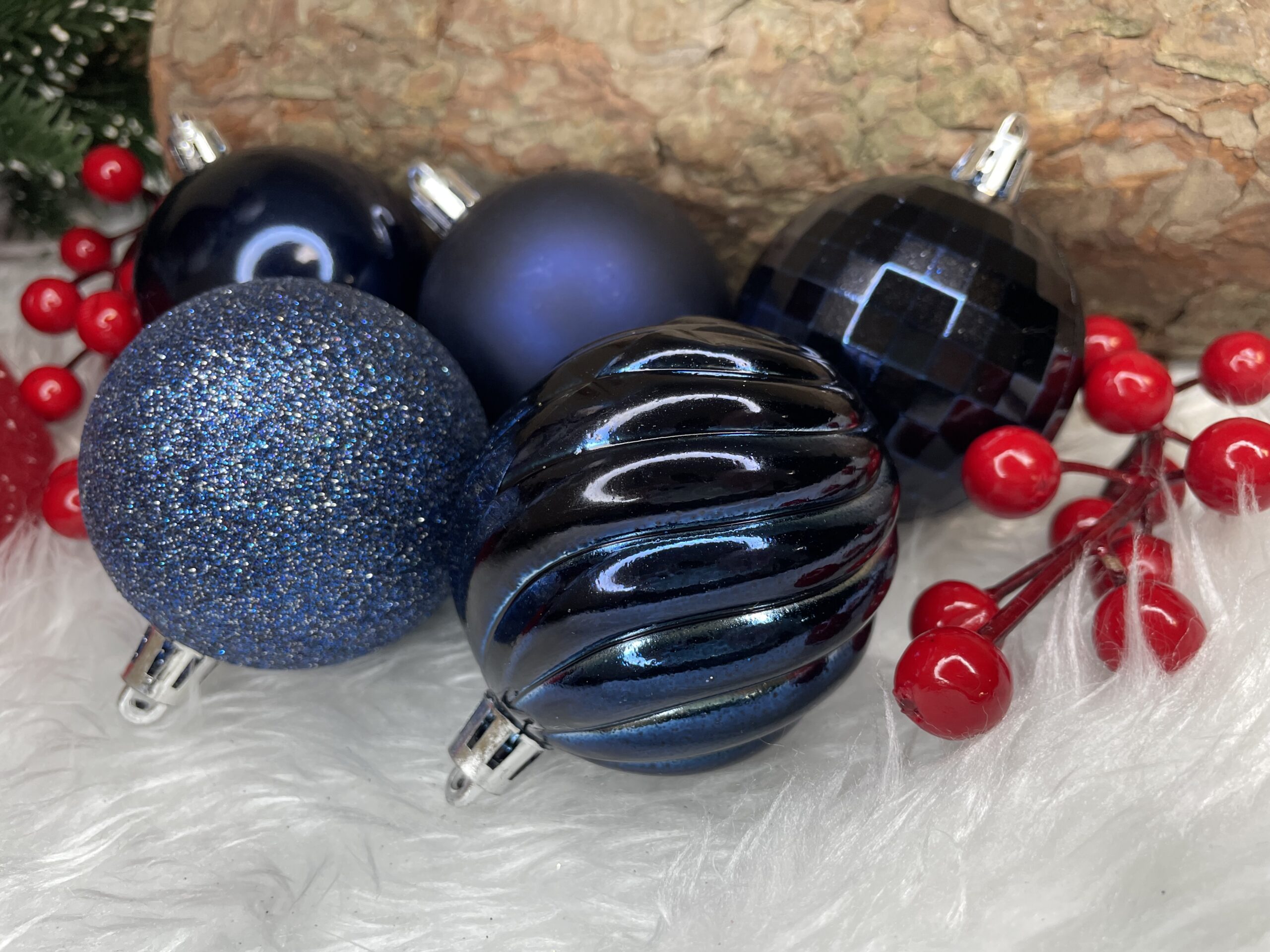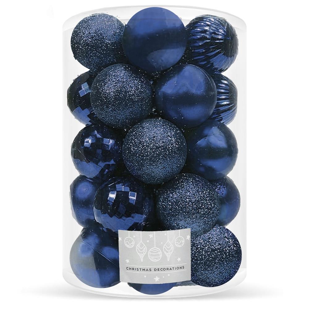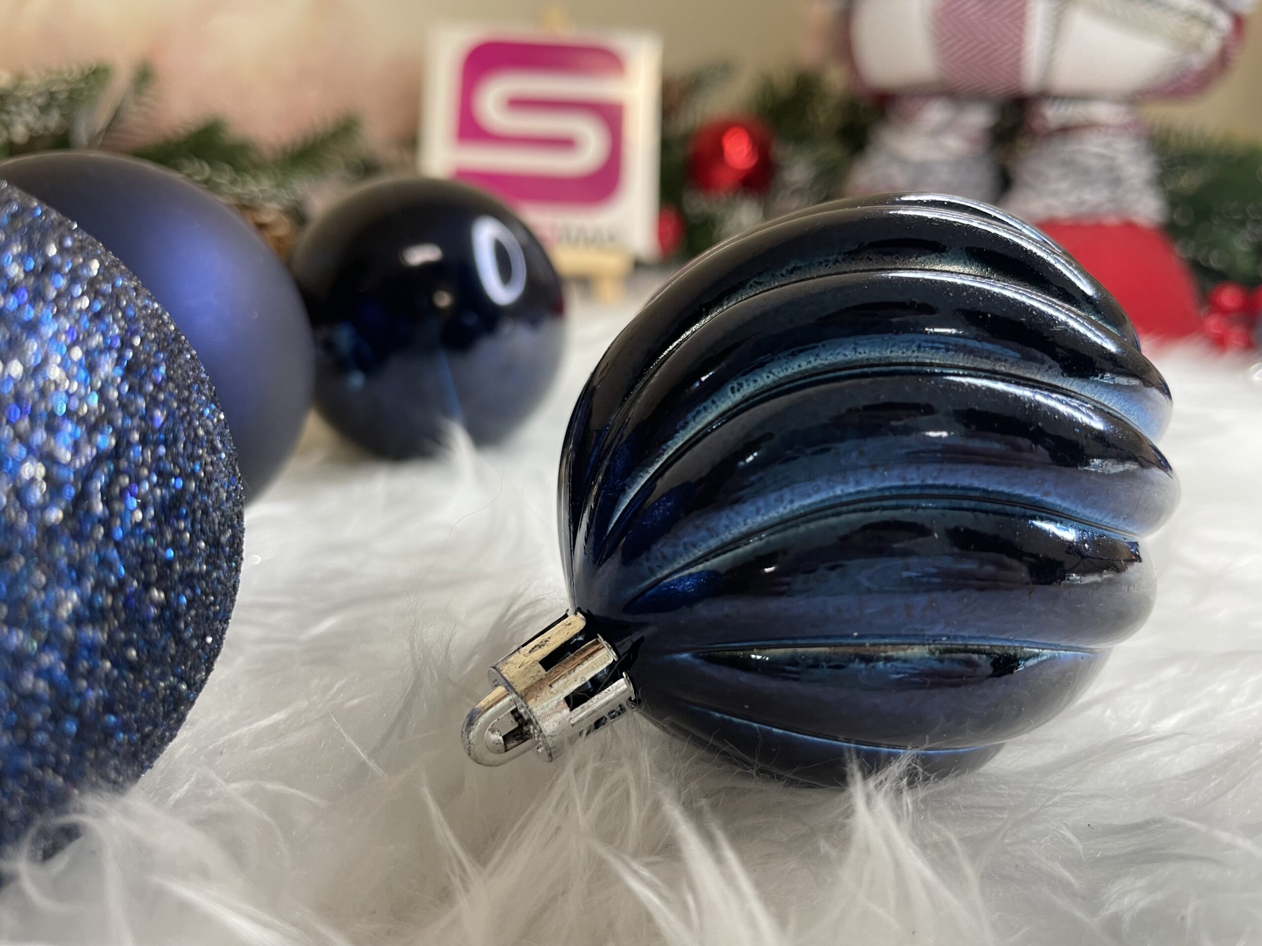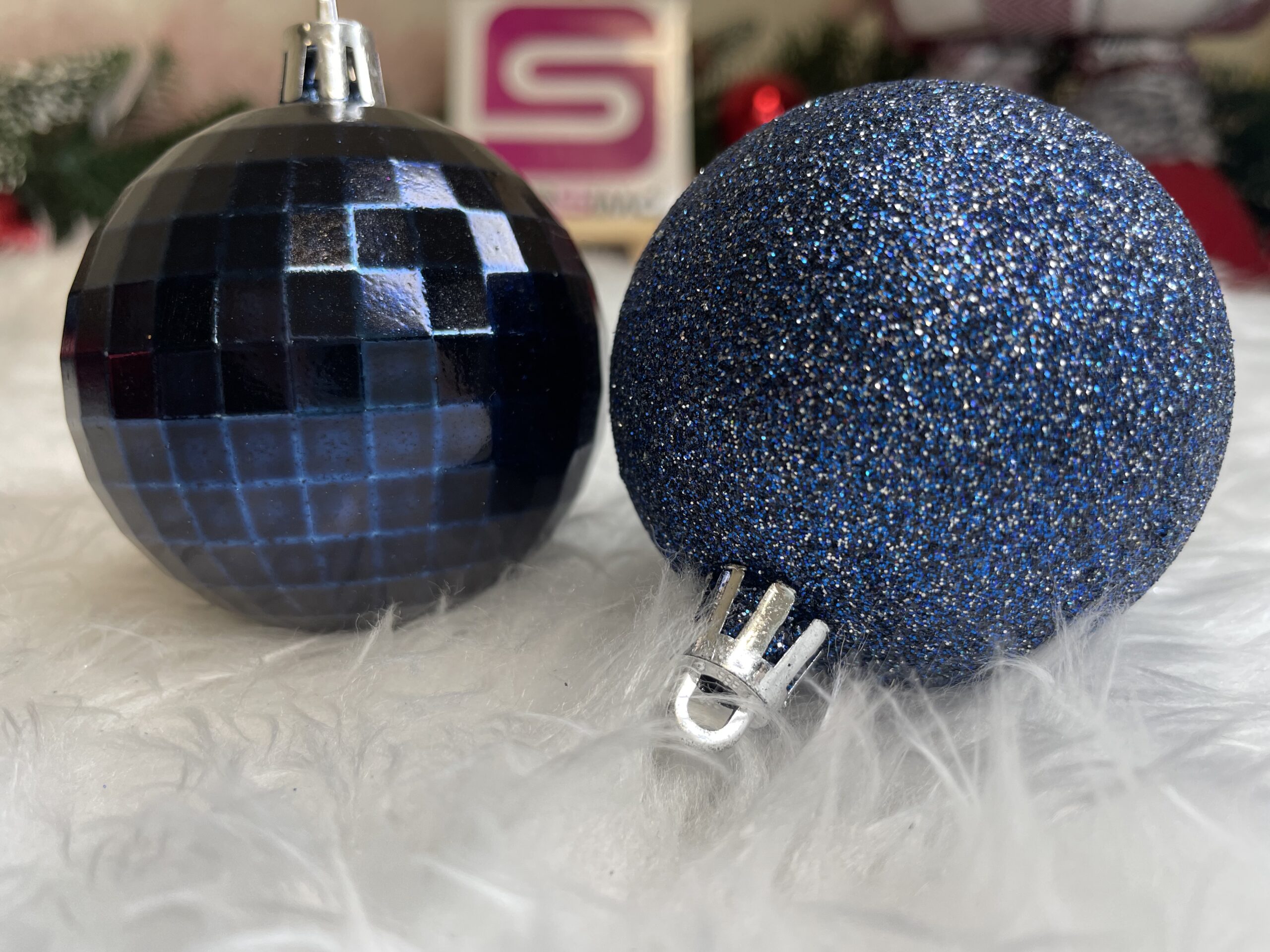 Set 20 globuri de Craciun albastre, 5 modele, 6 cm, plastic incasabil