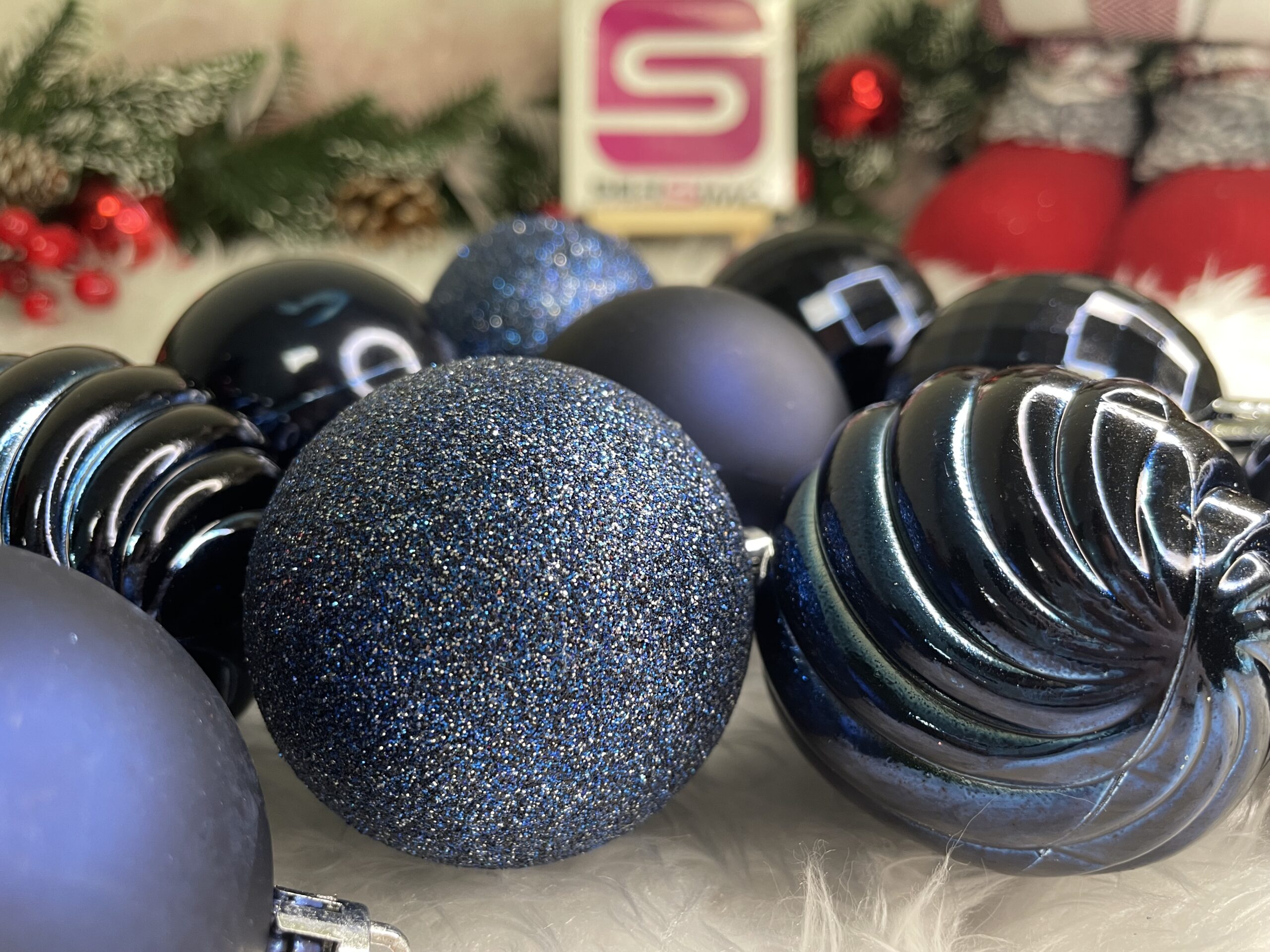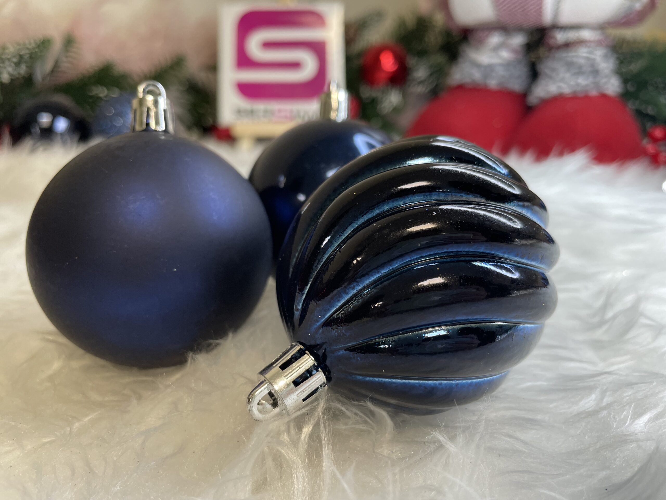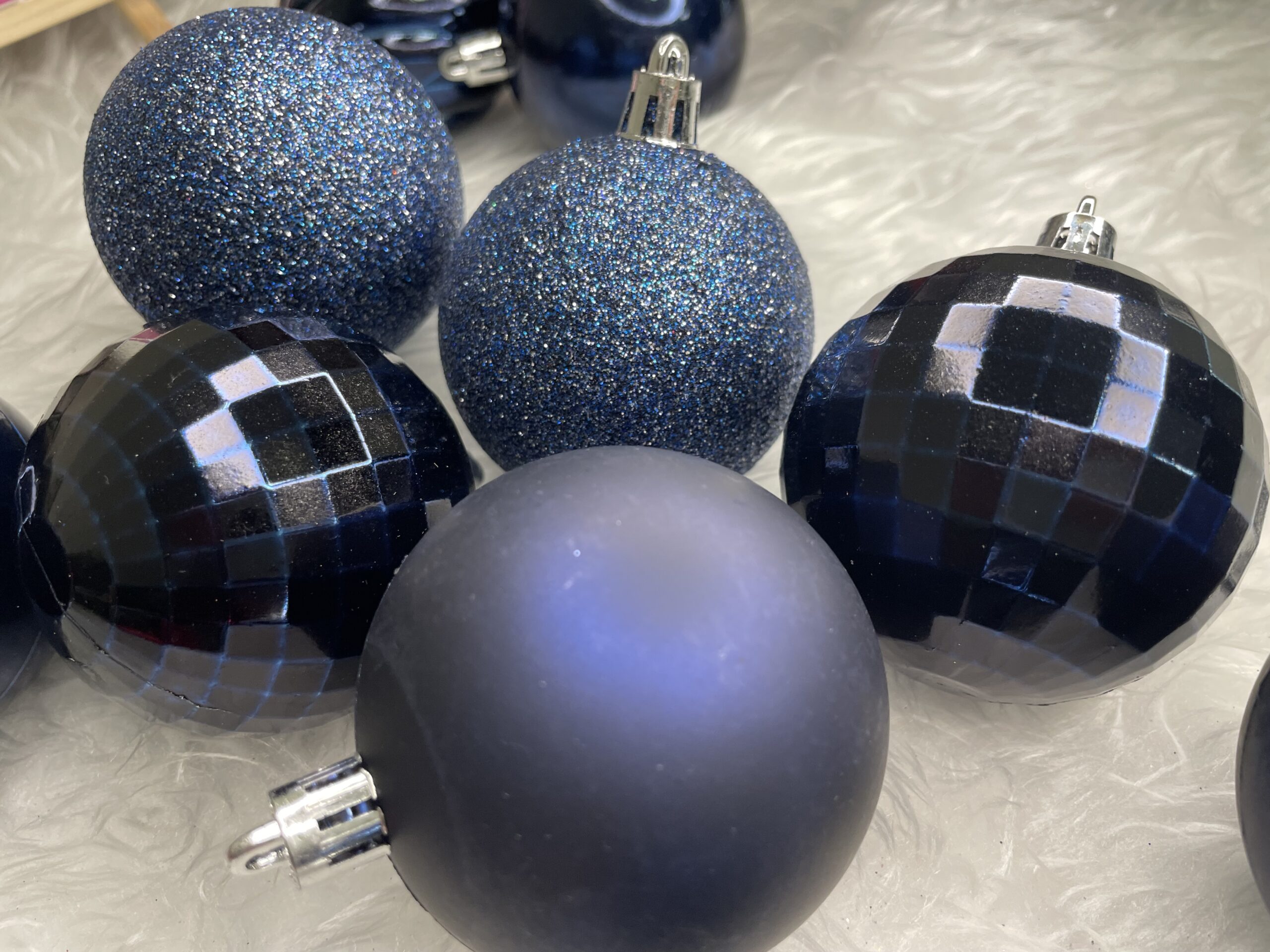 Set 20 globuri de Craciun albastre, 5 modele, 6 cm, plastic incasabil