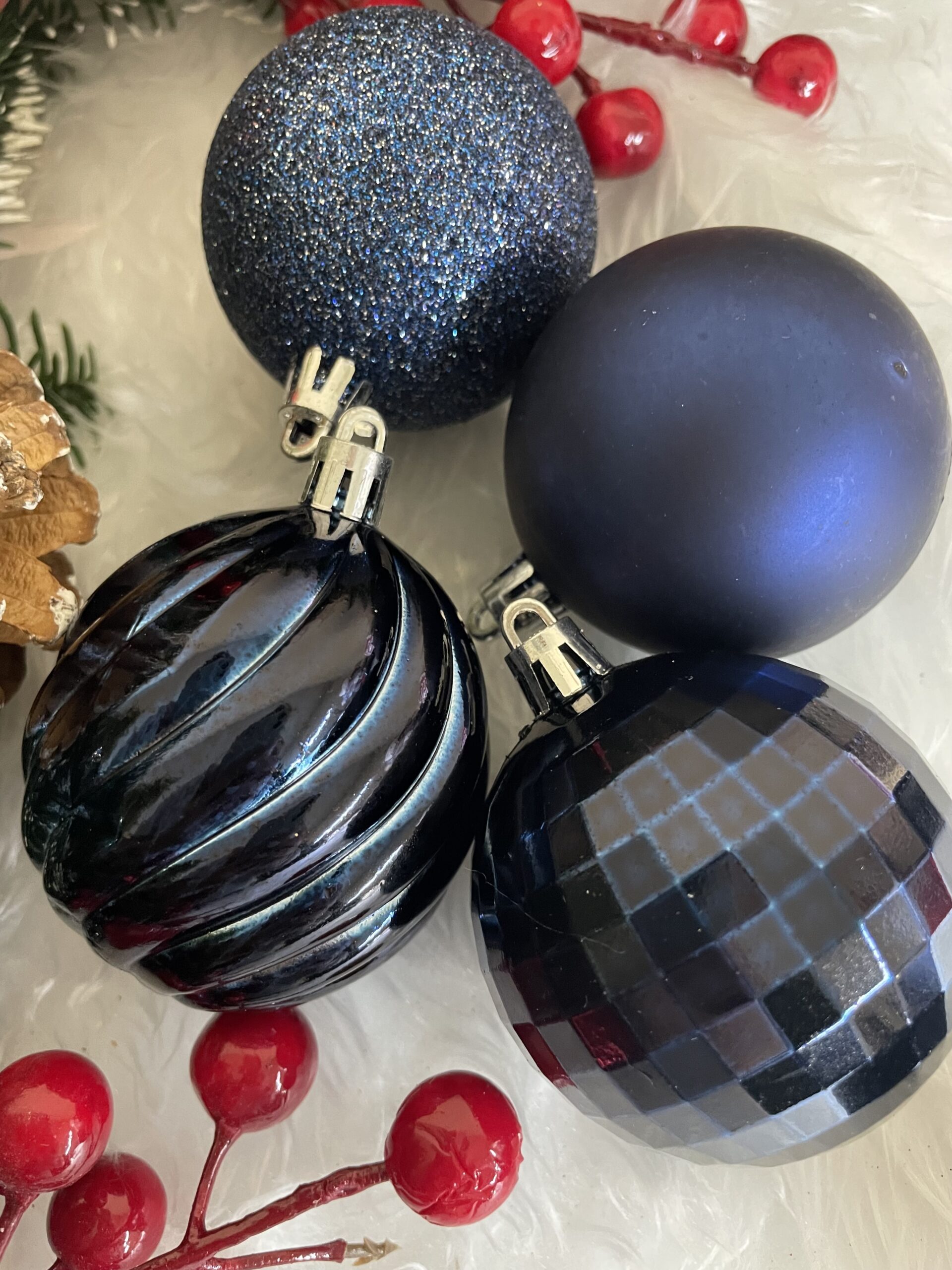 Adauga un plus de farmec bradului cu acest set de globuri de Craciun in nuanta eleganta de albastru inchis. Pachetul contine 20 de globuri cu finisaje variate, perfecte pentru un decor festiv modern sau clasic. Realizate din plastic incasabil, aceste globuri pentru brad sunt o alegere practica si sigura pentru locuintele cu copii sau animale de companie.